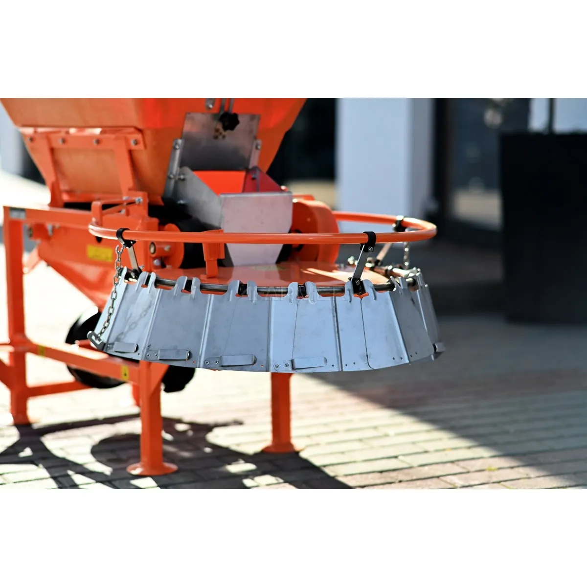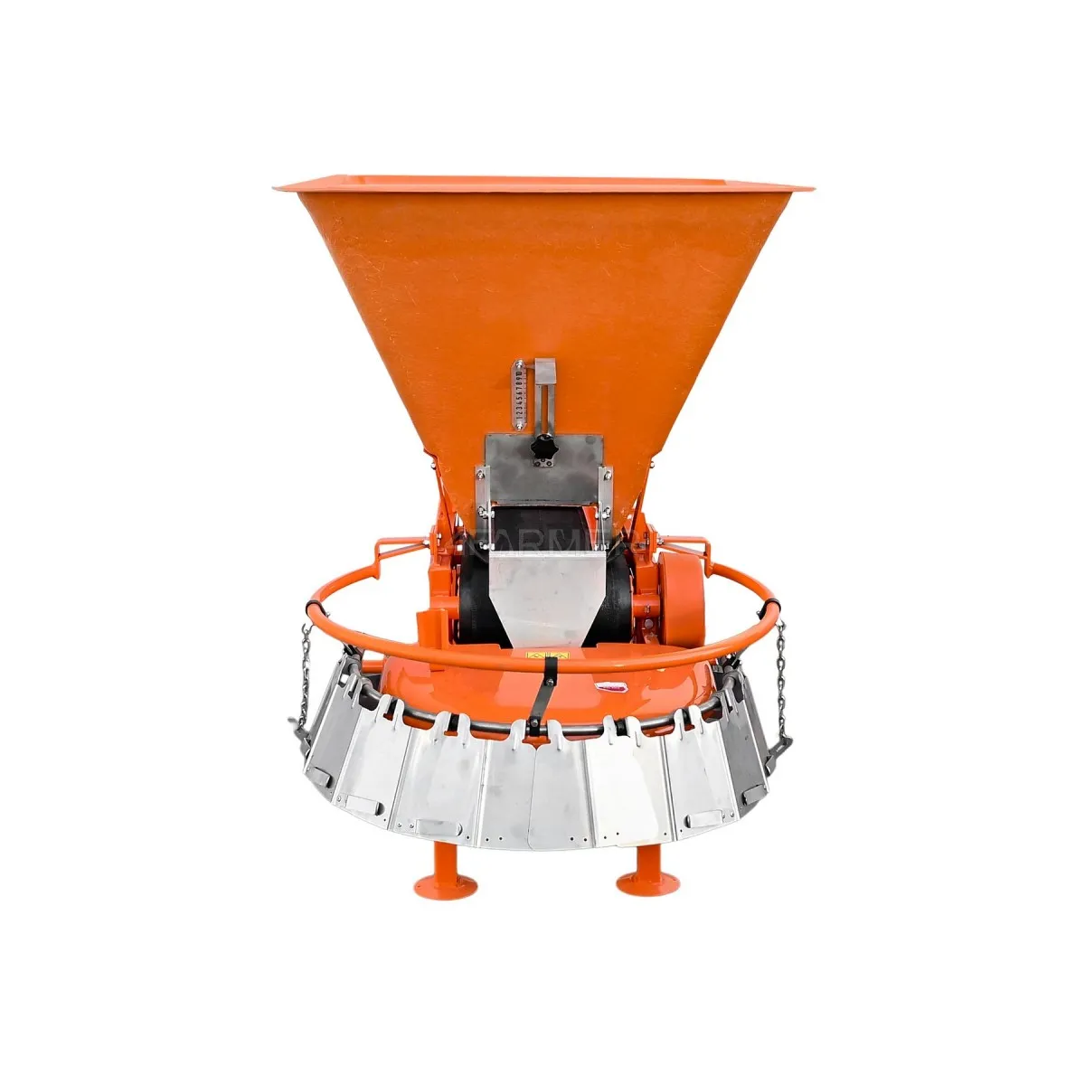 Urządzenie jest napędzane wałkiem odbioru mocy WOM/PTO przy zalecanej prędkości 540 obr/min. Wysiew odbywa się w oparciu o system tarczowo-odśrodkowy, który zapewnia równomierny rozrzut materiału. Zastosowany zbiornik posiada pojemność 320 litrów i jest wykonany z trwałego laminatu, odpornego na korozję oraz działanie soli. Jest to więc maszyna, która posłuży na lata efektywnego użytkowania.