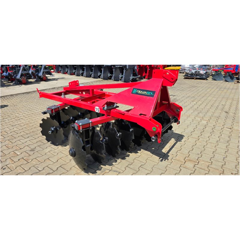 Oferowana brona talerzowa Demarol dzięki solidnej konstrukcji, gwarantuje długą oraz niezawodną pracę. Rama wykonana z profilu 100 x 60 mm zapewnia stabilność oraz wytrzymałość nawet w najtrudniejszych warunkach glebowych. Urządzenie wyposażone jest w talerze o grubości 4 mm oraz średnicy FI 510 mm, które rozdrabniają oraz mieszają resztki roślinne.