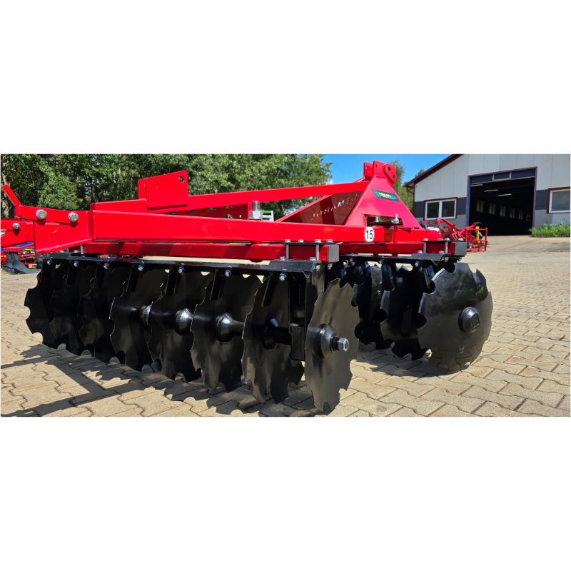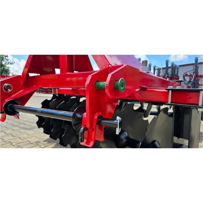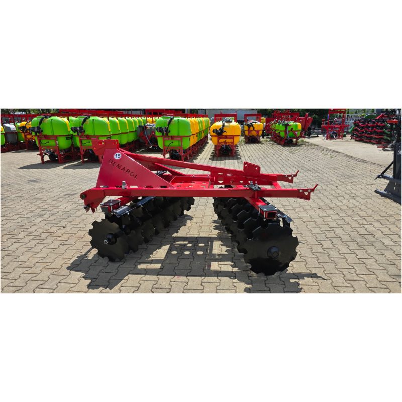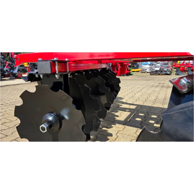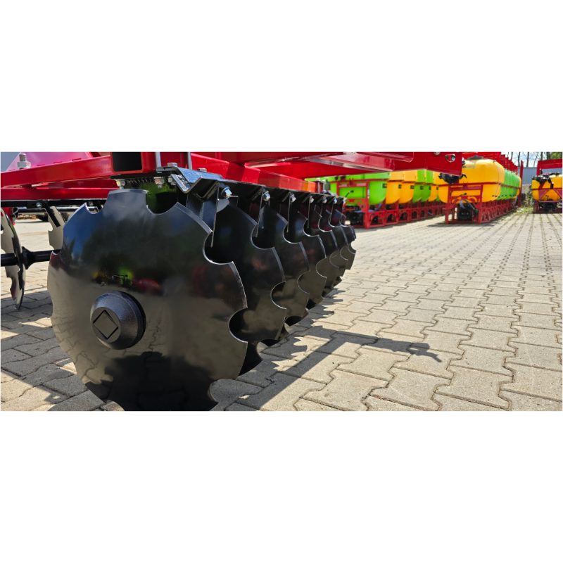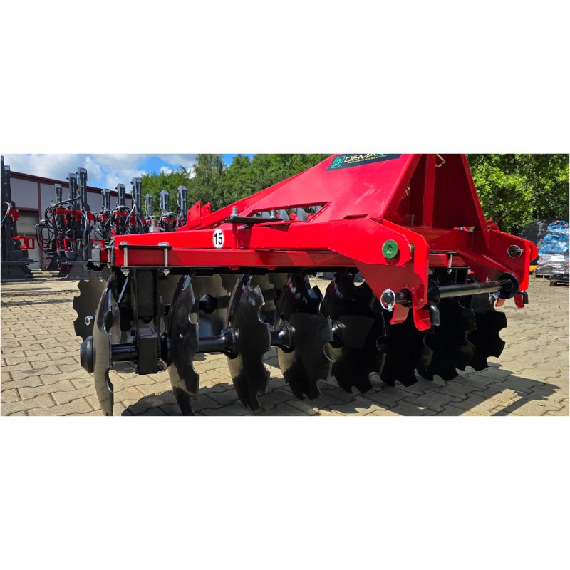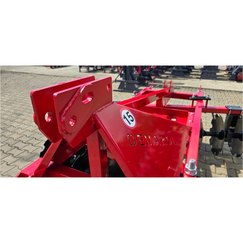 Brona talerzowa marki Demarol skutecznie rozdrabnia oraz miesza resztki roślinne. Dzięki temu przyczynia się do lepszego napowietrzenia oraz poprawy struktury gleby. Wyposażona jest w solidne talerze o grubości 3 mm oraz średnicy FI 51 cm. Zapewniają one optymalną głębokość pracy oraz skuteczność w uprawie.