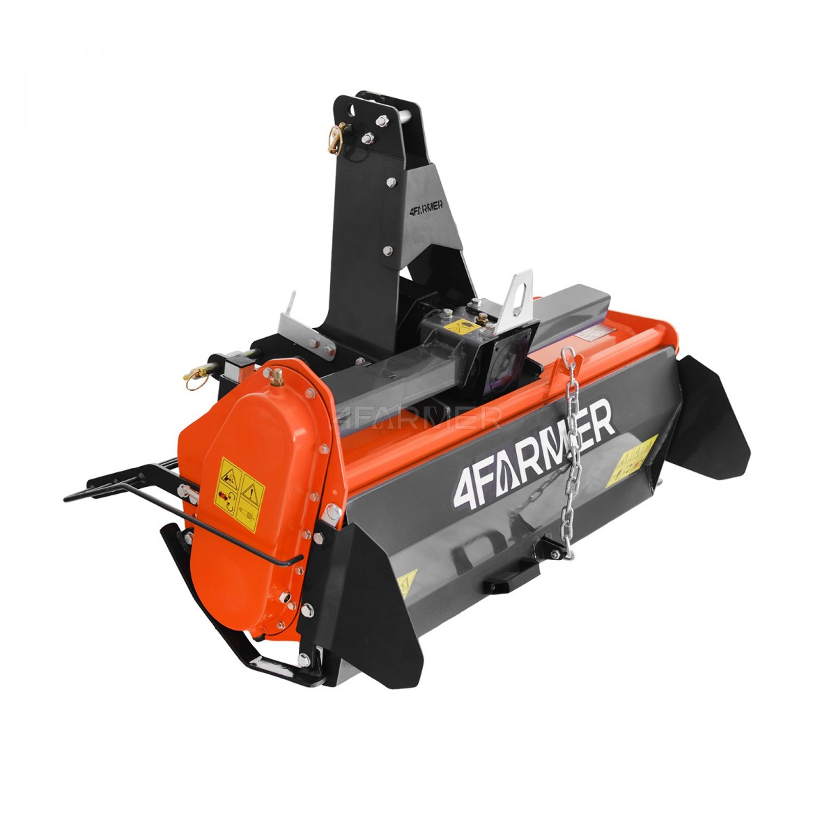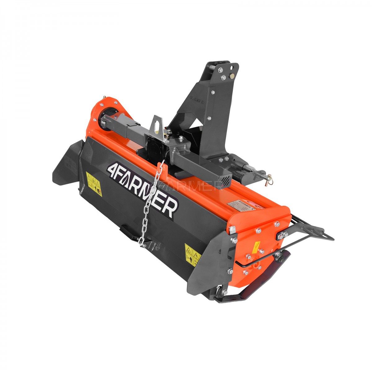 Przedstawiona glebogryzarka 4FARMER jest chroniona przed uszkodzeniem w przypadku nagłych obciążeń. Zwiększa to bezpieczeństwo użytkowania oraz wpływa na niezawodność maszyny. Sprzęt wyposażony jest bowiem w mechanizm, który wymaga stosowania wałka WOM z zabezpieczeniem, np. zrywny klin.