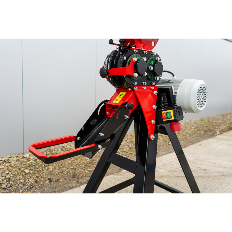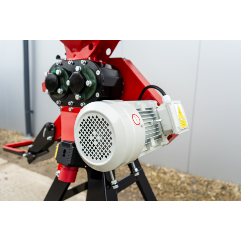 Za stabilną pracę gniotownika zbożowego GX-100 NEW odpowiada trójfazowy silnik indukcyjny o mocy 3 kW. Napęd przenoszony jest poprzez przekładnię prasową bezpośrednio na wały zgniatające. Takie rozwiązanie minimalizuje ryzyko przeciążeń i zapewnia płynną pracę.