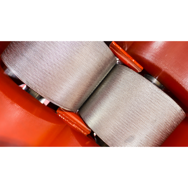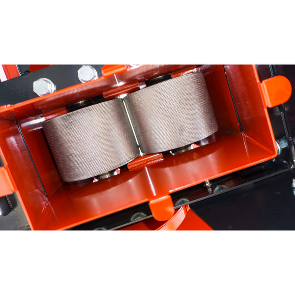 Odpowiedzialnymi za precyzyjne i równomierne zgniatanie ziaren są 2 stalowe walce zgniatające. Posiadają one średnicę 14 cm oraz szerokość 10 cm. Kosz zasypowy wyposażony jest w blokadę umożliwiającą precyzyjne podawanie materiału do walców. Ta funkcja zwiększa kontrolę nad procesem przetwarzania. Efektywny wylot ułatwia zbieranie przetworzonego materiału. Może być on wsypany bezpośrednio do kosza lub worka.