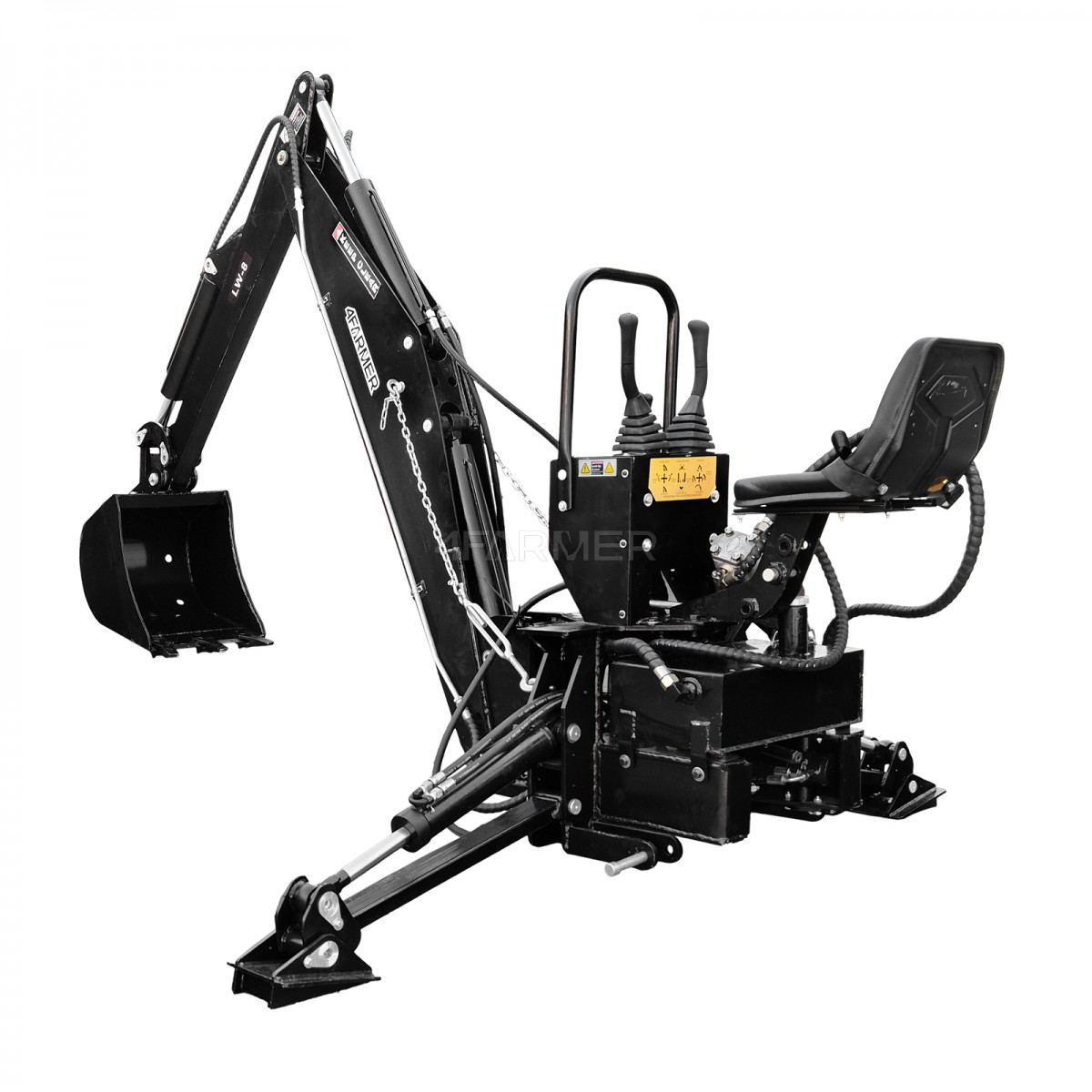 Jej elastyczność sprawia, że idealnie nadaje się do robót ziemnych, takich jak kopanie, melioracja pól czy czyszczenie rowów, a także do zastosowań przeładunkowych i dźwigowych. Koparka do ciągnika LW-8 4FARMER wyposażona jest w niezależny układ hydrauliczny z własną pompą CBN-F320. Zapewnia to niezawodność oraz efektywność w każdym działaniu. System ten jest podłączany do wałka odbioru mocy ciągnika, co gwarantuje wysoką wydajność.