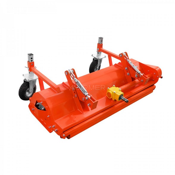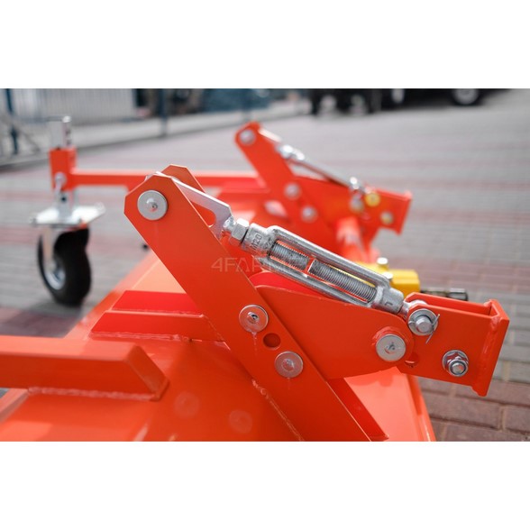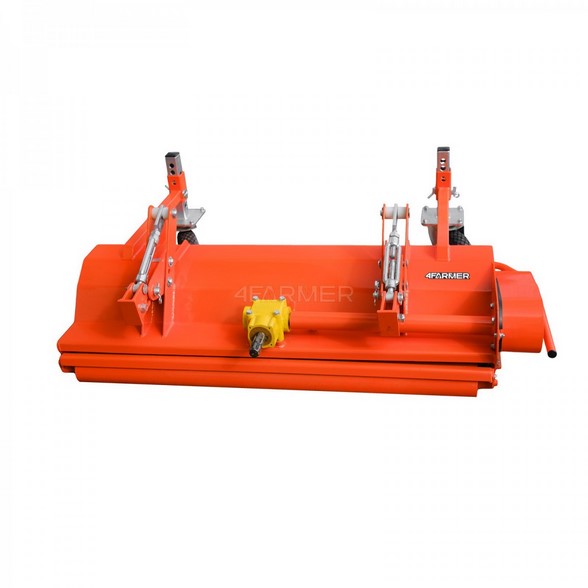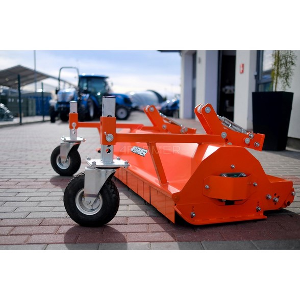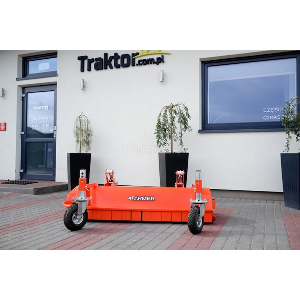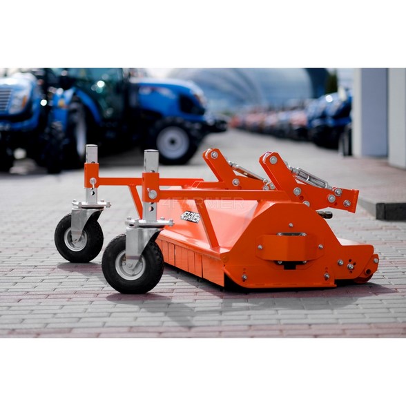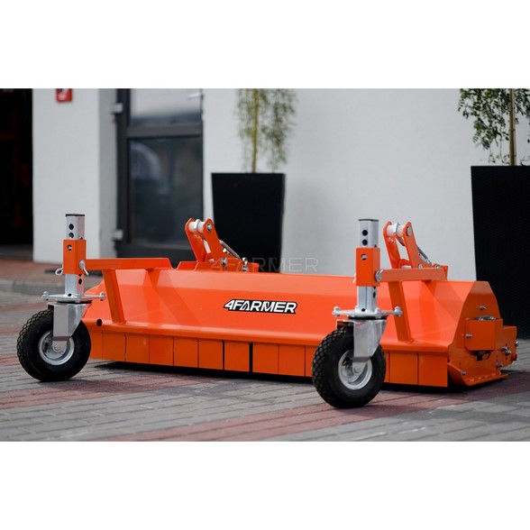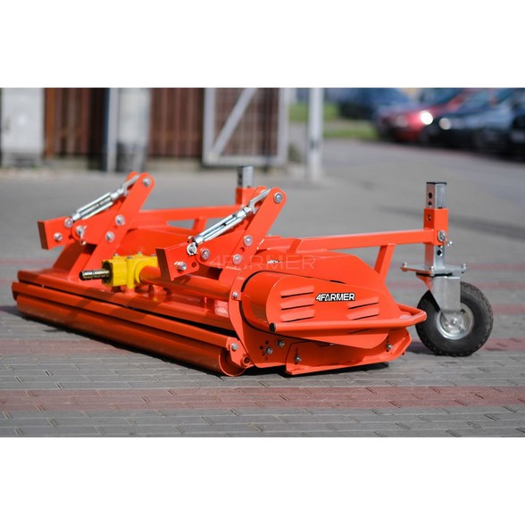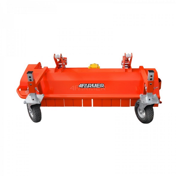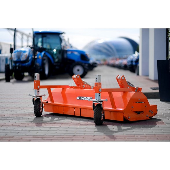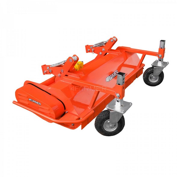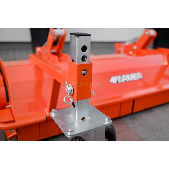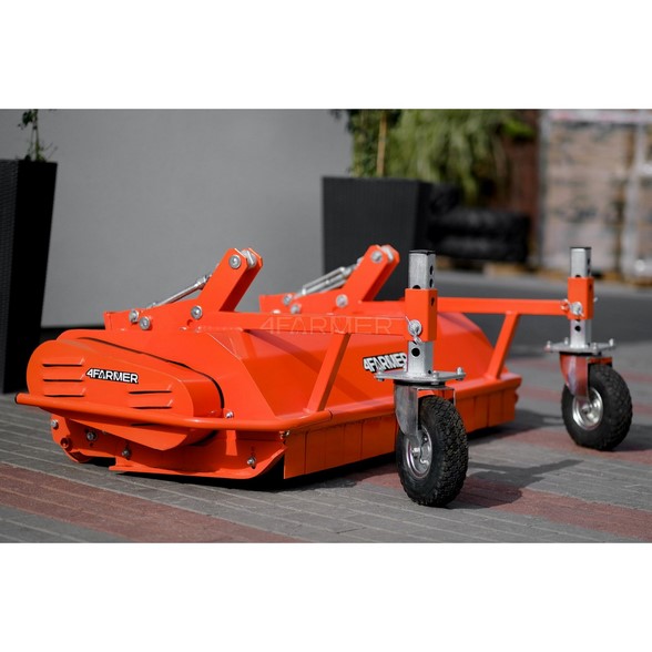 Solidne urządzenie rotacyjne typu bijakowego marki 4Farmer montuje się na przodzie ciągnika. Dwa koła podporowe pozwalają na precyzyjną regulację wysokości koszenia. Jest to szczególnie przydatne, gdy koszenie odbywa się w różnych warunkach terenowych.