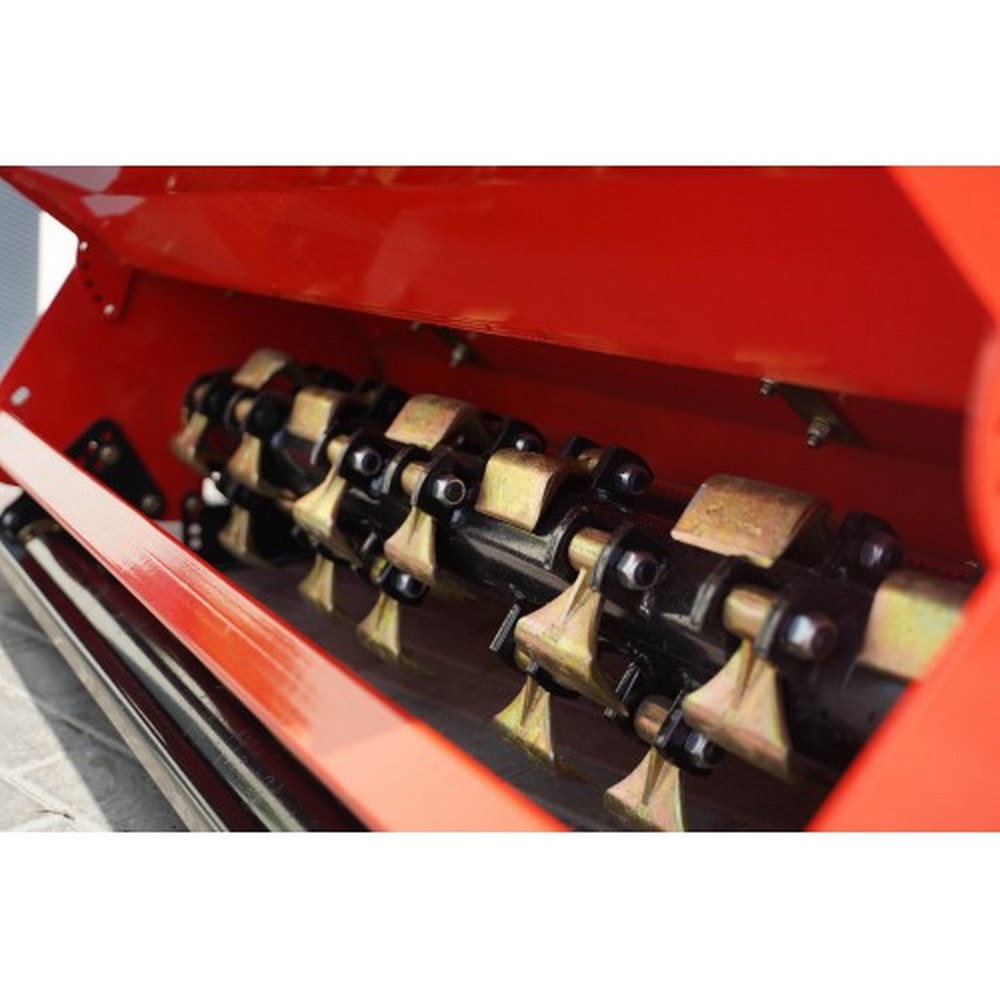 Czym cechuje się kosiarka bijakowa EFGC-K 135? Po pierwsze wytrzymałą konstrukcją. Jej wykonanie z wytrzymałych materiałów zapewnia stabilność pracy w każdych warunkach, co gwarantuje długą żywotność urządzenia. Kosiarka wyposażona jest w 24 młotki znajdujące się na wale. Skutecznie radzą sobie one z roślinnością do 6 cm grubości.