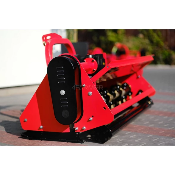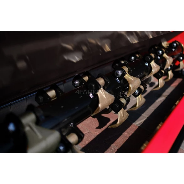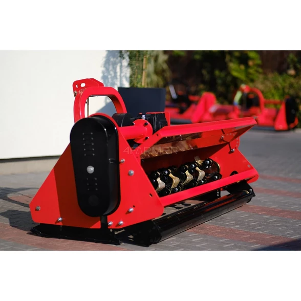 Przedstawiona kosiarka oferuje nie tylko funkcję koszenia, ale również mulczowania. Dzięki czemu pozwala na rozdrobnienie skoszonych roślin na mniejsze elementy, które rozrzucone po glebie stanowią naturalny nawóz. Idealnym rozwiązaniem zastosowanym w tej kosiarce jest otwierana tylna klapa. Otworzenie jej umożliwia zmniejszenie rozdrabniania materiału na silnie zarośniętych terenach, zmniejszając tym samym obciążenie ciągnika podczas koszenia.