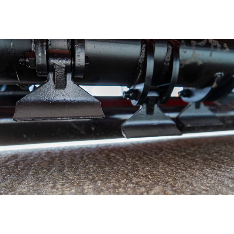 Urządzenie wyposażono w przekładnię napędową ze sprzęgłem jednokierunkowym, która zapewnia bezpieczne i wydajne przenoszenie mocy. Regulowane płozy prowadzące wpływają natomiast na precyzyjne ustawienie wysokości koszenia. Kosiarka bijakowa F2-200 posiada również regulowaną pokrywę wyrzutową w czterech pozycjach, dzięki temu można w sprawny sposób zarządzać rozdrobnionym materiałem.