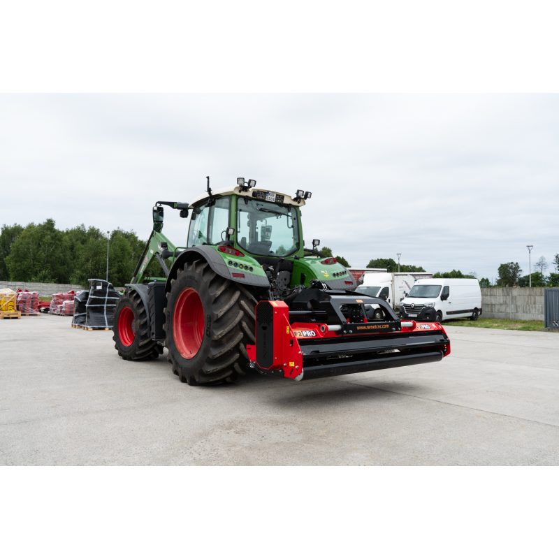 Kosiarka bijakowa F2-250 Pro to profesjonalne urządzenie do koszenia roślinności między innymi na wymagającym terenie. Model F2-250 Pro wyposażony jest w funkcję przesuwu bocznego, dzięki czemu prowadzenie maszyny może odbywać się w różnych warunkach. Zakres przesuwu bocznego wynosi 50 cm i jest -10 cm i +40 cm od osi. Szerokość koszenia wynosi 250 cm. Kosiarka może, więc sprawnie wykosić większe obszary.