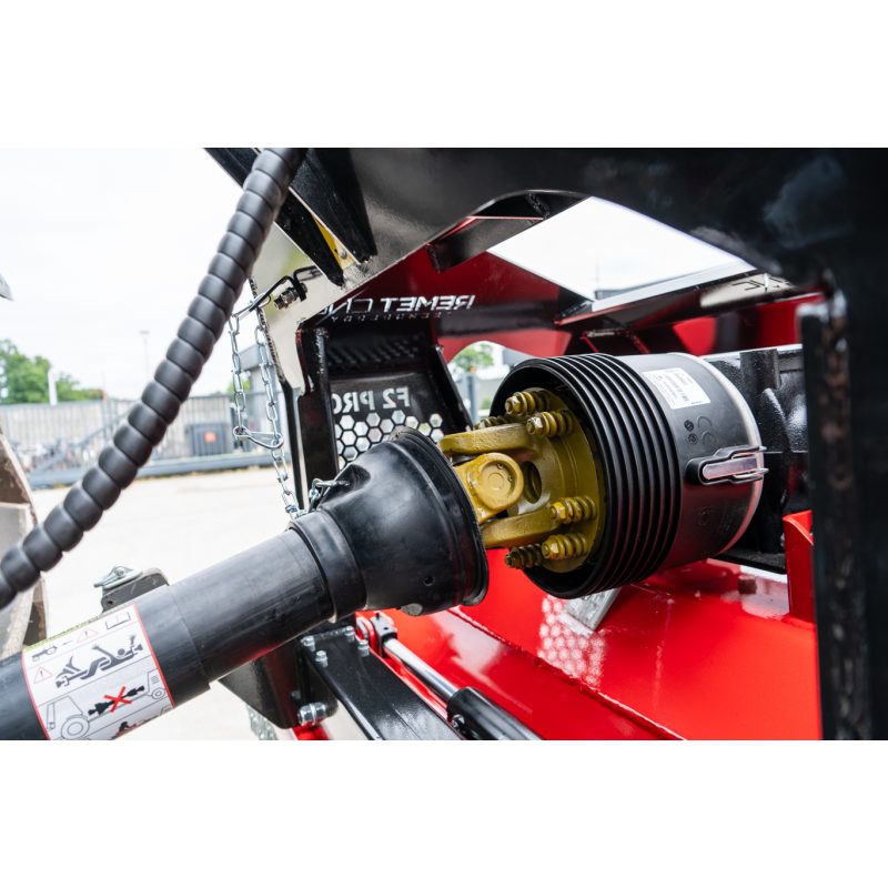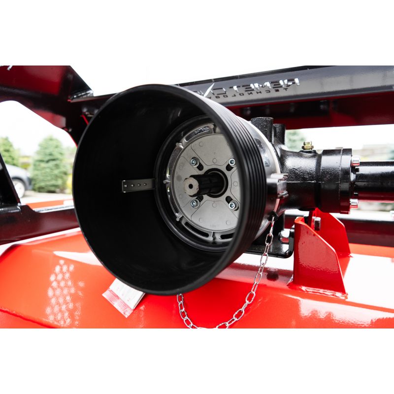Na efektywny jednostronny napęd pasowy kosiarki bijakowej F2-250 Pro, składa się przekładnia pasowa z pięcioma paskami XPB, chronionymi osłonami. Przekładania pozwala na przekazywanie mocy od 70 do 120 KM, a optymalna prędkość wałka WOM to 540 obr/min. Wał tnący dzięki tym parametrom osiąga prędkość obrotową 2380 obr/min.