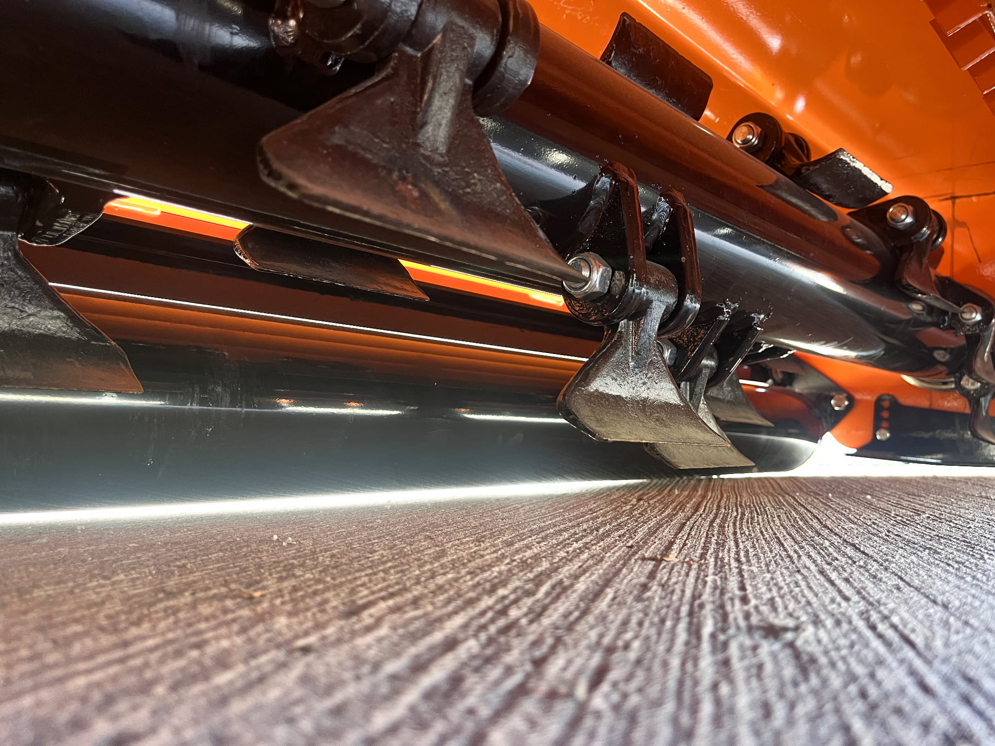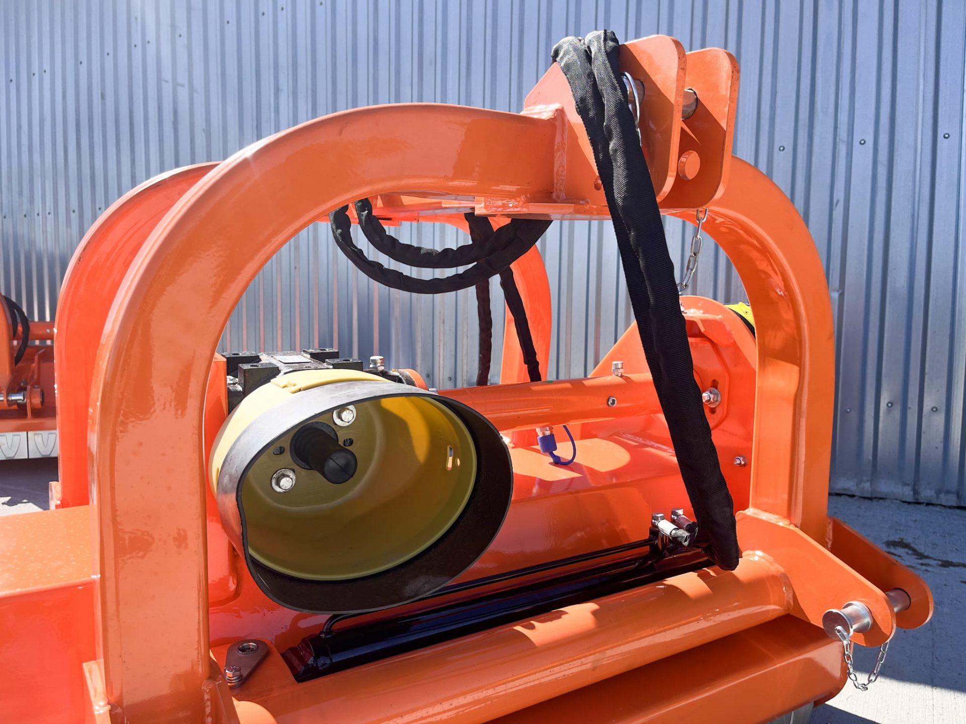 Napęd kosiarki pochodzi natomiast z wałka WOM ciągnika, dzięki czemu kosiarka może pracować stabilnie w każdych warunkach, nawet na trudnym terenie. Skuteczność pracy zapewniają również duże, ciężkie ostrza tnące. Poradzą one sobie nawet z gęstszą roślinnością lub gałęziami. Bijaki rozmieszczono w dwóch rzędach, co zwiększa efektywność rozdrabniania.