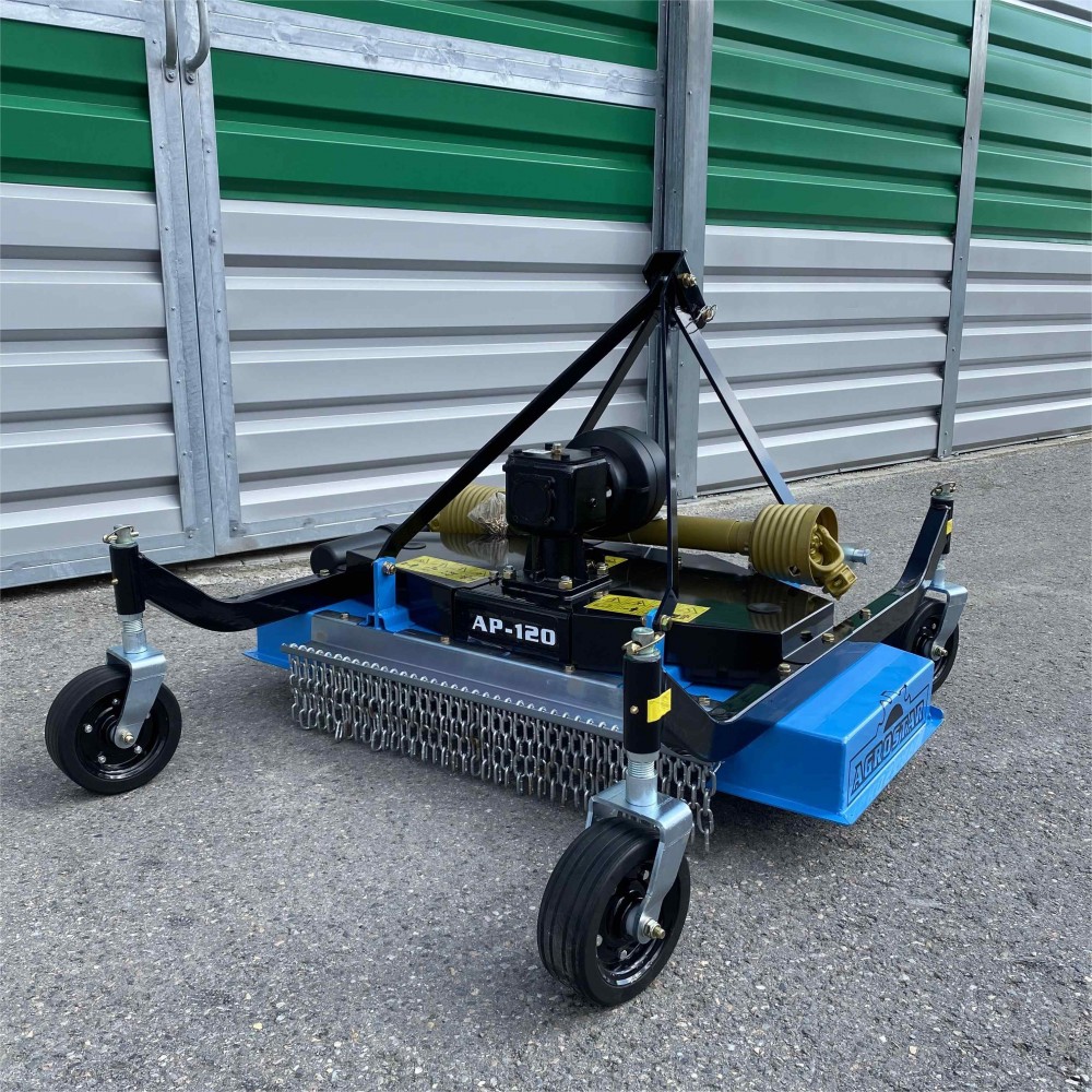 Czynnikiem, który wyróżnia kosiarkę AP- jest również solidna konstrukcja. Rama główna posiada grubość 4 mm, dzięki czemu produkt jest stabilny, solidny i odporny na uszkodzenia mechaniczne. Prędkość WOM na poziomie 540 obr./min pozwala na szybkie oraz dokładne koszenie. Kosiarka pielęgnacyjna AP jest szczególnie polecana do gospodarstw oraz firm, które dysponują mniejszymi traktorkami.