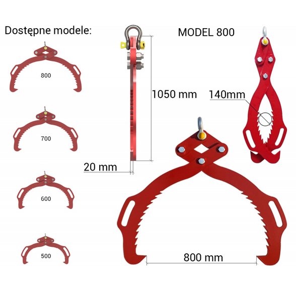 W standardzie, chwytak jest wyposażony w szeklę. Szekla umożliwia jego łatwe zapięcie. Prosty mechanizm zaciskowy sprawia, że chwytak automatycznie dostosowuje się do wagi podnoszonego ciężaru. Zapewnia tym samym stabilność i bezpieczeństwo podczas transportu. Chwytak do drewna to nieocenione narzędzie dla profesjonalistów zajmujących się leśnictwem, budownictwem oraz rolnictwem.