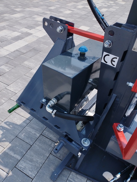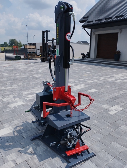 Łuparka jest napędzana na wałek WOM ciągnika, co przekłada się na solidne oraz niezawodne działanie urządzenia. Nie wymaga ona dodatkowego zasilania hydraulicznego z zewnątrz, ponieważ posiada własną pompę oraz zbiornik oleju. Ponadto, siła nacisku łuparki wynosi aż 20 ton, dzięki czemu radzi sobie ona również z twardszymi kłodami. Duży nacisk umożliwia szybkie i efektywne rozłupywanie drewna.