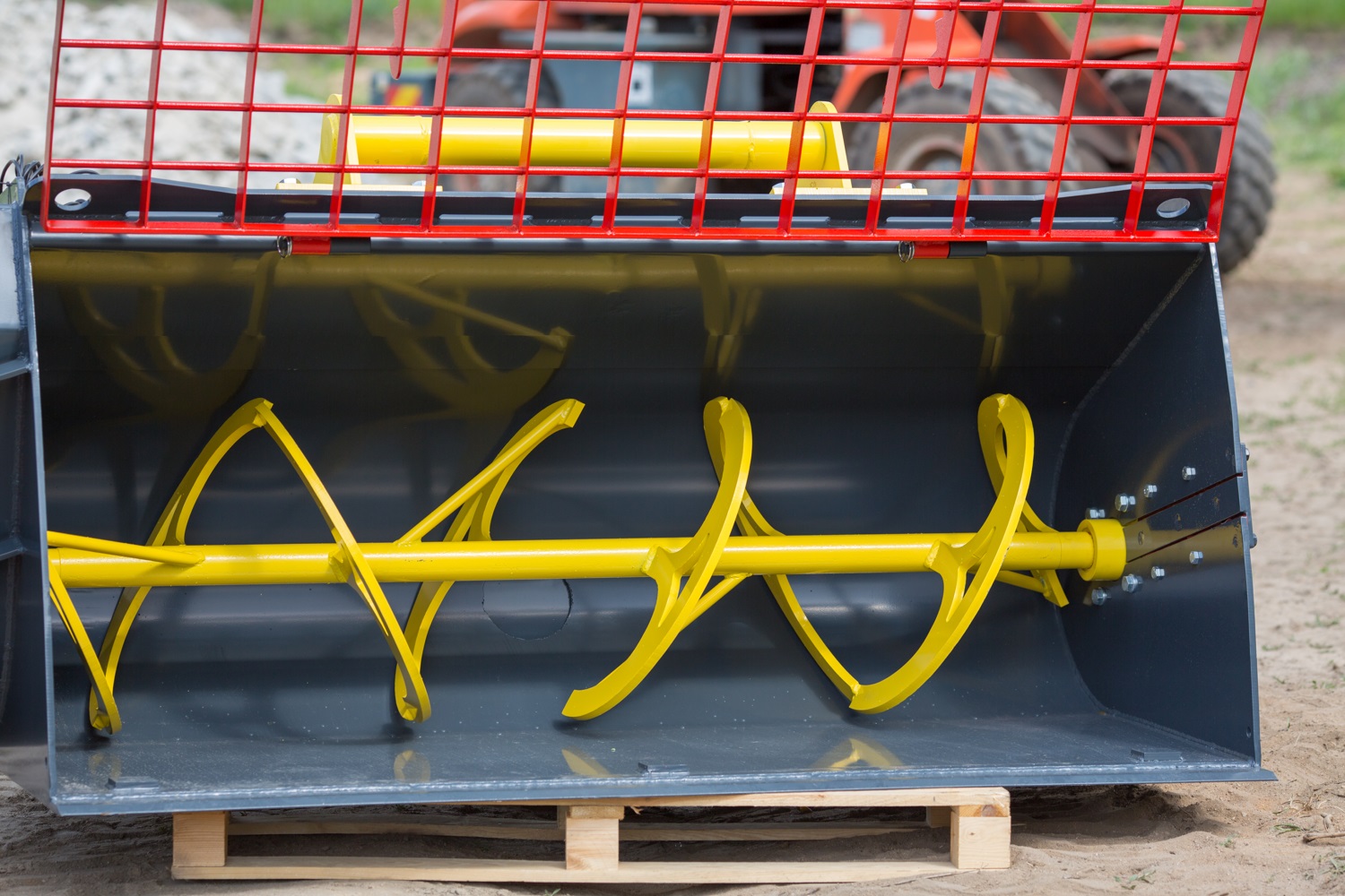 Zastosowanie kraty ochronnej sprawia, że do wnętrza mieszalnika nie przedostają się kamienie oraz inne zanieczyszczenia. Chroni to urządzenie oraz wydłuża jego żywotność. Ślimak mieszający jest kolejnym elementem głównym. Wykonano go z grubościennych materiałów, przez co zapewnia skuteczność działania. Lemiesz z wytrzymałej stali Hardox gwarantuje długą żywotność i odporność na zużycie.
