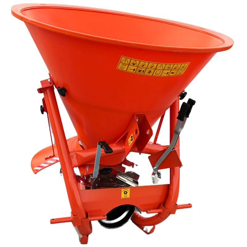 Rozsiew materiału może wynosić od 1,2 do 12 metrów. Na system rozsiewu składa się talerz wysiewu wyposażony w sześć łopatek. Dzięki temu rozsypywanie soli lub piasku jest nie tylko sprawne, ale również równomierne. Zastosowanie przekładni bezobsługowej gwarantuje niezawodność, a dwie dźwignie regulacji wysiewu, pozwalają na regulację i dostosowanie ilości rozsypywanego materiału.