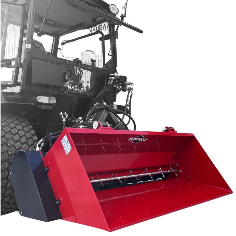 Na szczególną uwagę zasługuje innowacyjny system samozaładunku. Dzięki niemu proces załadunku stał się niesamowicie uproszczony. Gdy operator najedzie tyłem na hałdę, posypywarka samodzielnie pobierze materiał. W przypadku ręcznego ładowania materiału, pojemnik można w szybki i łatwy sposób opuścić, a następnie napełnić. Takie możliwości umożliwiają zaoszczędzenie czasu operatora posypywarki samozaładowczej Sanko.