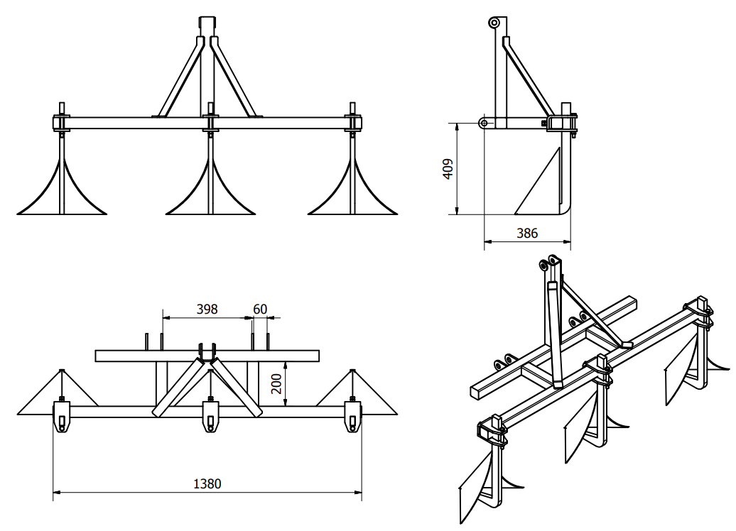 Oferowany obsypnik jednorzędowy jest łatwy do dostosowania do różnych rodzajów roślin. Przeznaczony jest jednak do pracy z roślinami, których maksymalna wysokość wynosi 60 cm. Mocowanie obsypnika jest możliwe na TUZ I kategorii, dzięki czemu jest kompatybilnym narzędziem z większością ciągników.