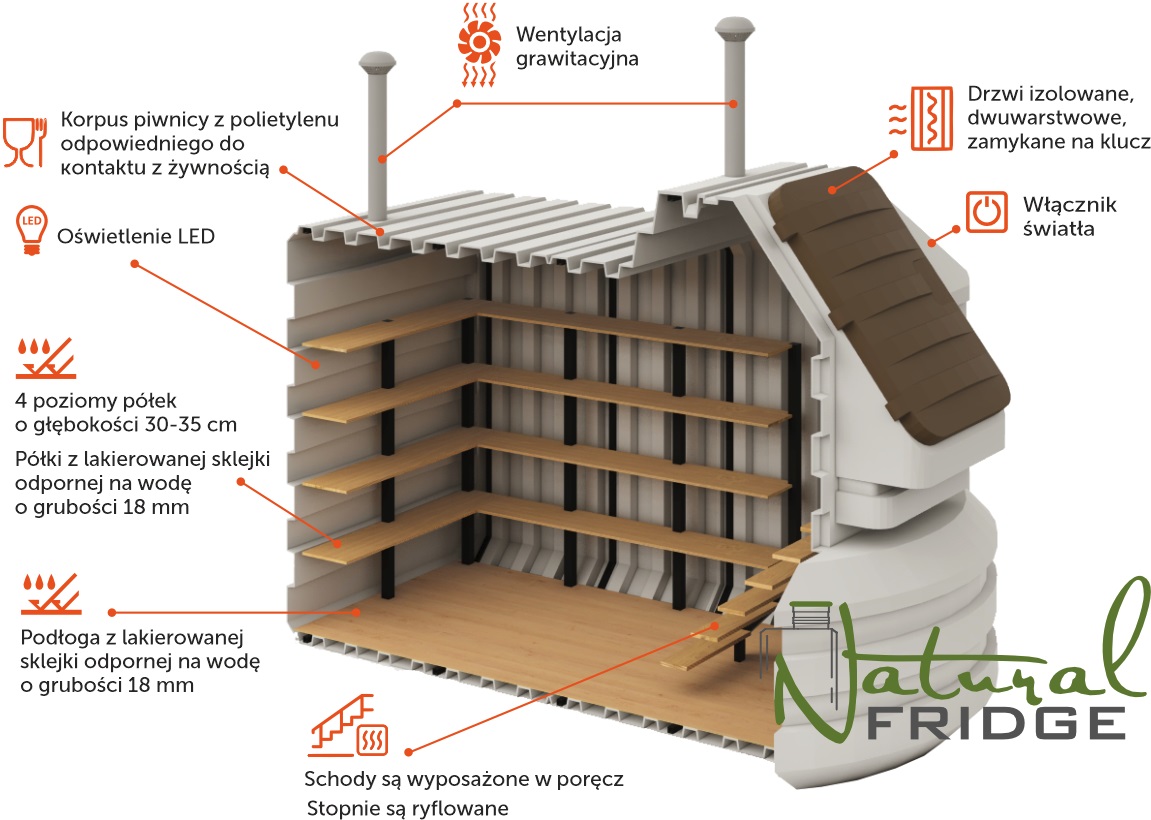 Bezproblemowe użytkowanie: Dzięki przemyślanej konstrukcji i dodatkowym funkcjom, korzystanie z piwnicy jest wygodne i bezpieczne.