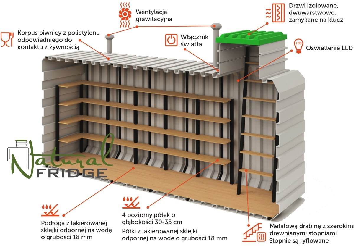 Odkryj piwnicę ogrodową o wymiarach 200 x 480 x 265 cm, która stanowi idealne rozwiązanie do przechowywania warzyw, owoców, domowych przetworów czy alkoholi. Dzięki niej, Twoje produkty żywnościowe będą przechowywane w optymalnych warunkach temperaturowych, bez konieczności zużycia energii elektrycznej.