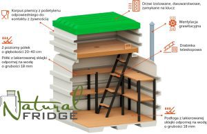 Stabilna temperatura: Utrzymuje temperaturę wewnętrzną zimą od +1 do +4°C, chroniąc przechowywane produkty.