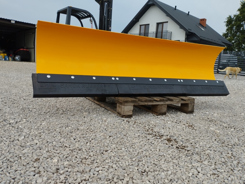 Oferowany pług posiada 200 centymetrów szerokości, czołową płytę montażową z hydraulicznym unoszeniem. Ta funkcja pozwala na efektywne spychanie śniegu. Wytrzymałość pługu zapewnia gęste użebrowanie z blachy o grubości 6-8 mm oraz zastosowanie ceowników i zetowników 4 mm.
