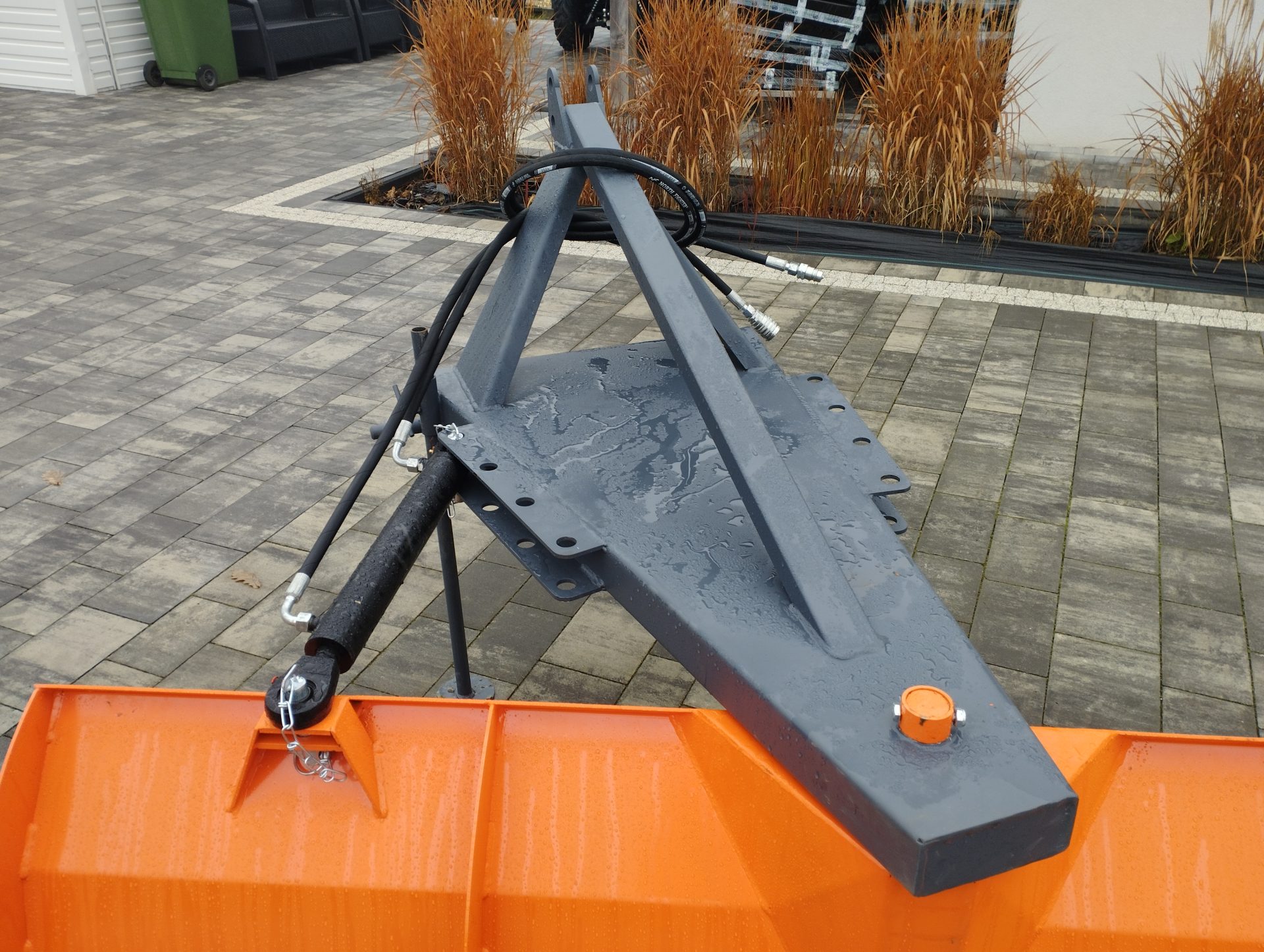 Pług śnieżny został zaprojektowany z myślą o trwałości i odporności na uszkodzenia mechaniczne. Wzmocniona rama zapewnia dużą wytrzymałość nawet w najbardziej wymagających warunkach, a dodatkowa stopka w zestawie umożliwia stabilne ustawienie pługa podczas postoju.