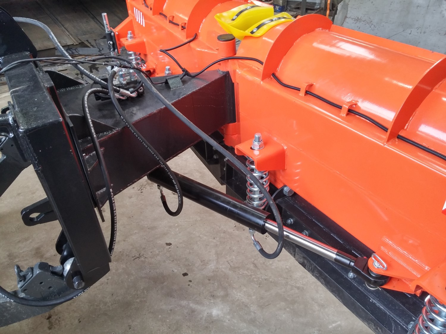 Operator pługu posiada pełną kontrolę nad kątem pracy pługu, dzięki hydraulicznemu systemowi sterowania. Amortyzacja lemiesza za pomocą znajdujących się z tyłu sprężyn chroni dodatkowo sprzęt przed uszkodzeniami podczas odśnieżania.