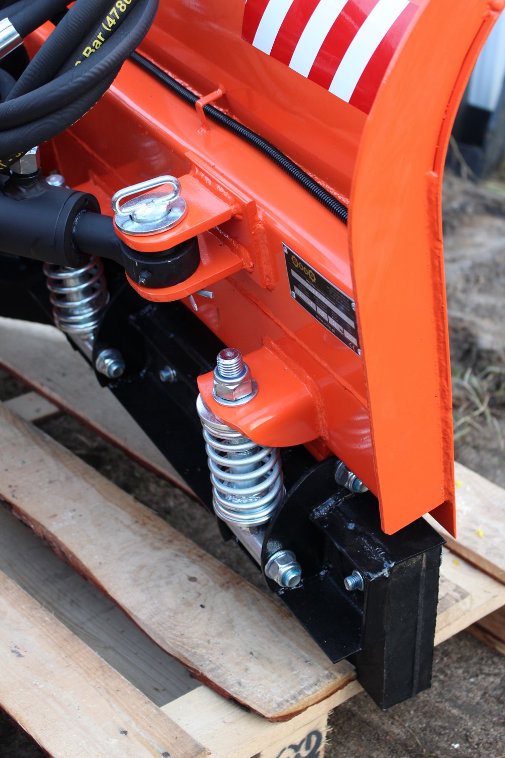 Kolejnym elementem cechującym przedstawiony pług strzałkowy jest solidna konstrukcja. Narzędzie posiada elementy wykonane z wysokiej jakości materiałów. Dzięki temu pług jest odporny na trudne warunki atmosferyczne. U dołu znajduje się gumowy lemiesz wzmocniony kordem. Sprężyny zapewniają lepszą amortyzację lemiesza, w trudnych warunkach.