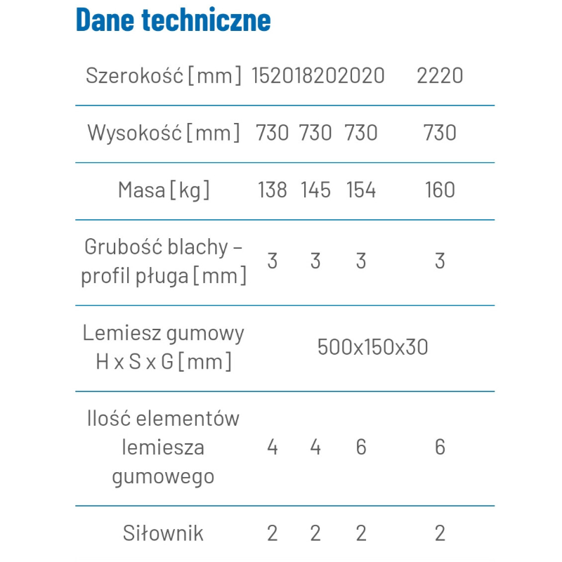 Na dole pługu znajduje się gumowy lemiesz. Dzielona guma na lemieszu pozwala na wymianę tylko zużytych części, co znacząco obniża koszty eksploatacji. Na bezpieczeństwo operatora wpływa również wbudowane oświetlenie. Umożliwia to bezpieczną pracę nawet po zapadnięciu zmroku.
