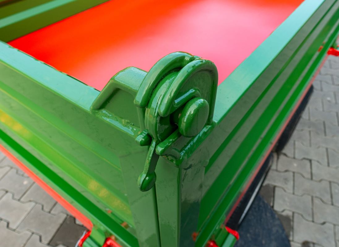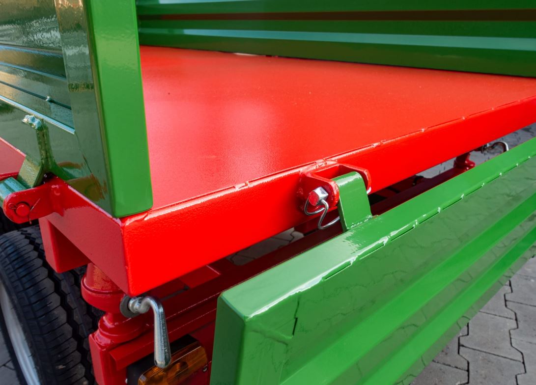 Przyczepa wykonana jest z wysokiej jakości materiałów, które wpływają na trwałość sprzętu. Malowanie proszkowe sprawia, że powierzchnia przyczepy rolniczej jest chroniona przed korozją oraz przed uszkodzeniami mechanicznymi. Na stabilność oraz bezpieczeństwo wpływ ma zastosowanie kół podporowych. Dzięki nim przyczepa jest stabilna podczas postoju, co przekłada się na komfort oraz bezpieczeństwo podczas pracy z nią.