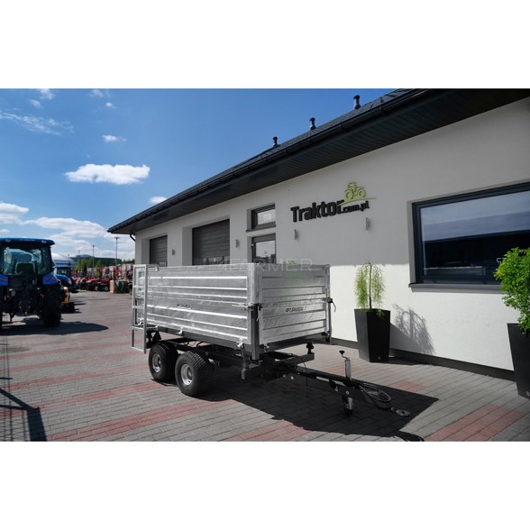 Ta jednoosiowa przyczepa umożliwia przewóz dużych ilości materiałów, co znacząco zwiększa wydajność w codziennych zadaniach rolniczych. Z ładownością sięgającą 2 ton, jest idealna do transportu sypkich materiałów, plonów czy narzędzi rolniczych. - Kiprowanie hydrauliczne na trzy strony