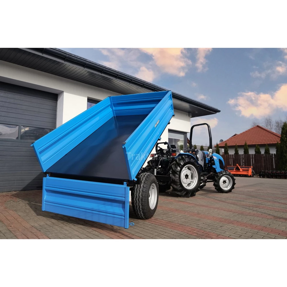 Kluczową cechą tej przyczepy rolniczej jednoosiowej jest kiprowanie hydrauliczne na trzy strony. Funkcja kiprowania hydraulicznego umożliwia szybki i wygodny rozładunek towarów w dowolnym kierunki. Zarówno na boki, jak i do tyłu. To praktyczne rozwiązanie, które ułatwia pracę w zróżnicowanych warunkach terenowych. Jest szczególnie istotne przy transporcie materiałów sypkich. Ponadto, wszystkie burty przyczepy można łatwo zdemontować. Ułatwia to załadunek i rozładunek większych przedmiotów lub materiałów.