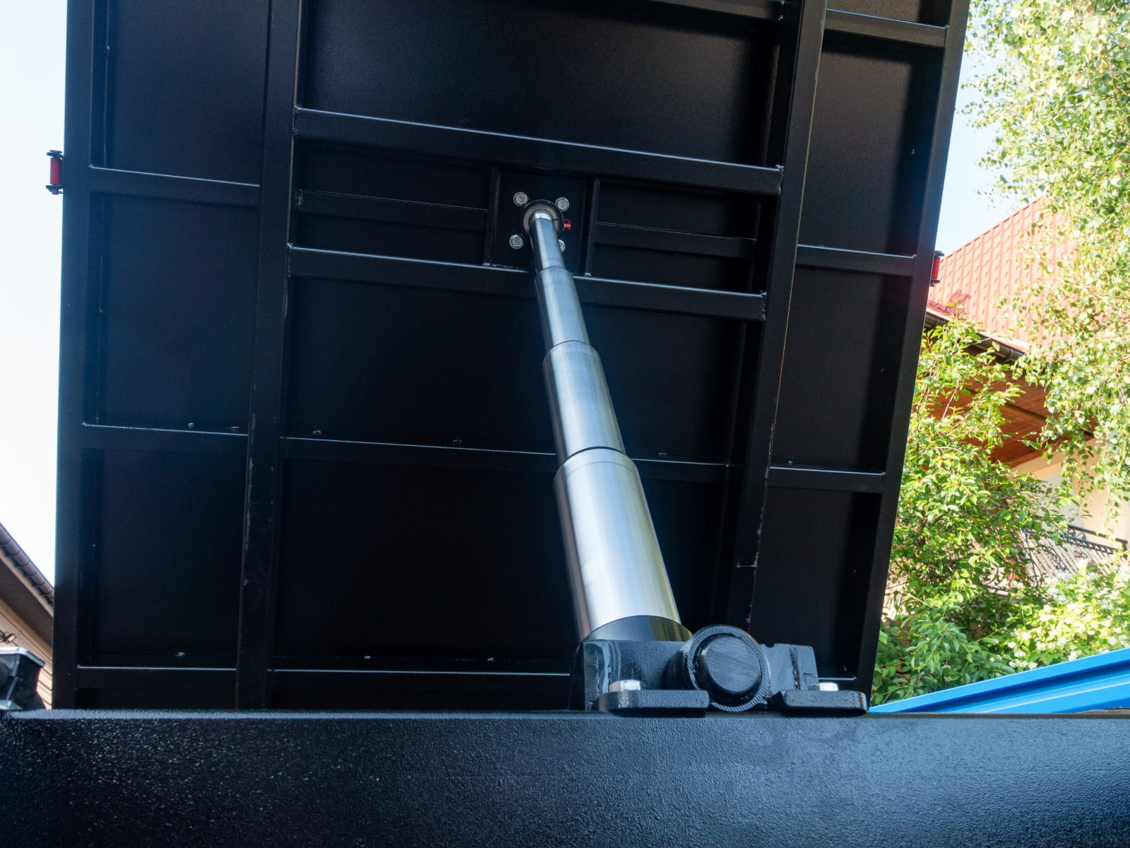 Hydrauliczne kiprowanie na trzy strony, jakie posiada ta przyczepa rolnicza jednoosiowa R-260 znacząco ułatwia rozładunek. Sprawia, że jest on szybki oraz wygodny, niezależnie od warunków. Użyty siłownik hydrauliczny 4-stopniowy jest niezawodnym mechanizmem podczas kiprowania. Dodatkowo, uszczelnienie typu warga przekłada się na szczelność skrzyni, dzięki czemu można bez problemu przewozić materiały sypkie.