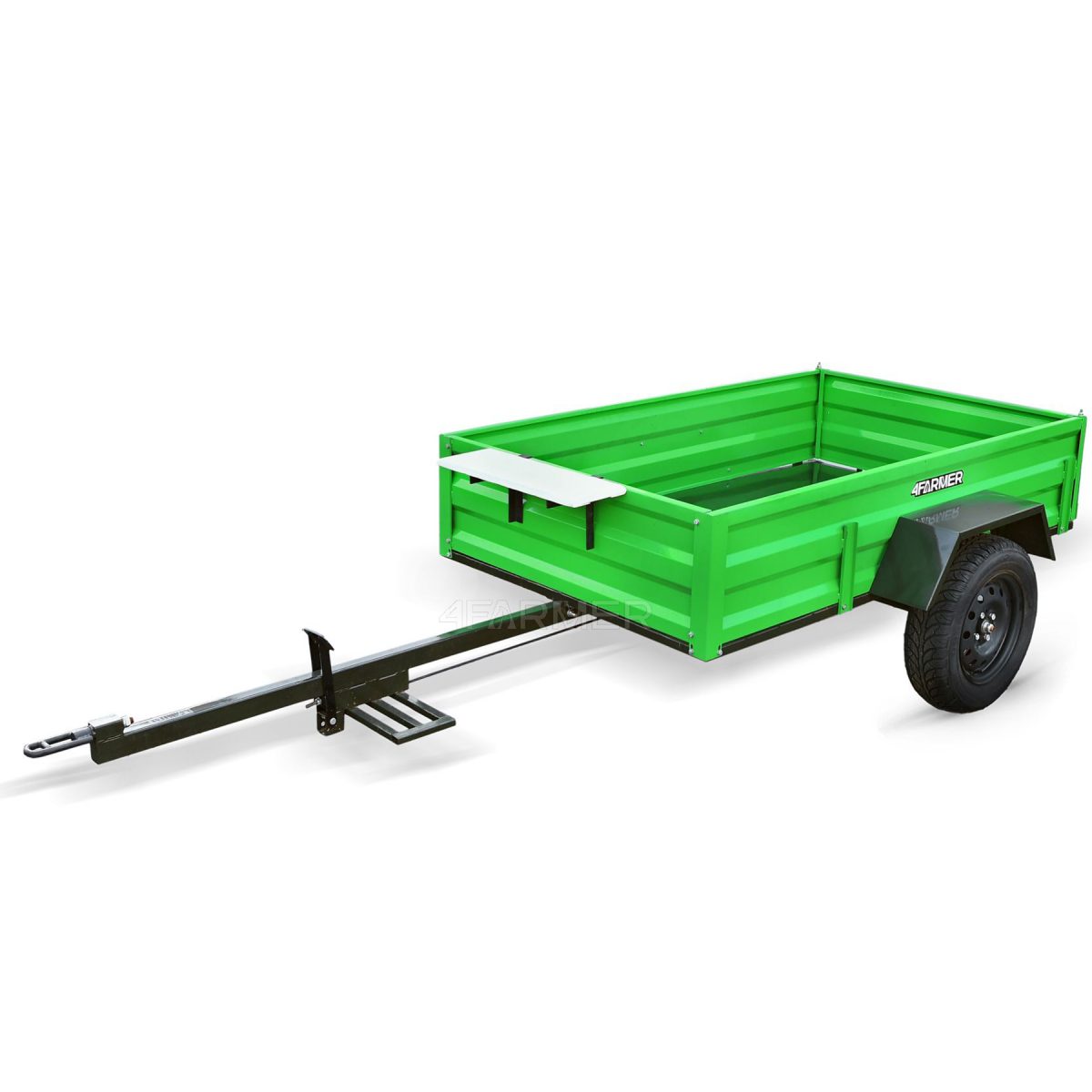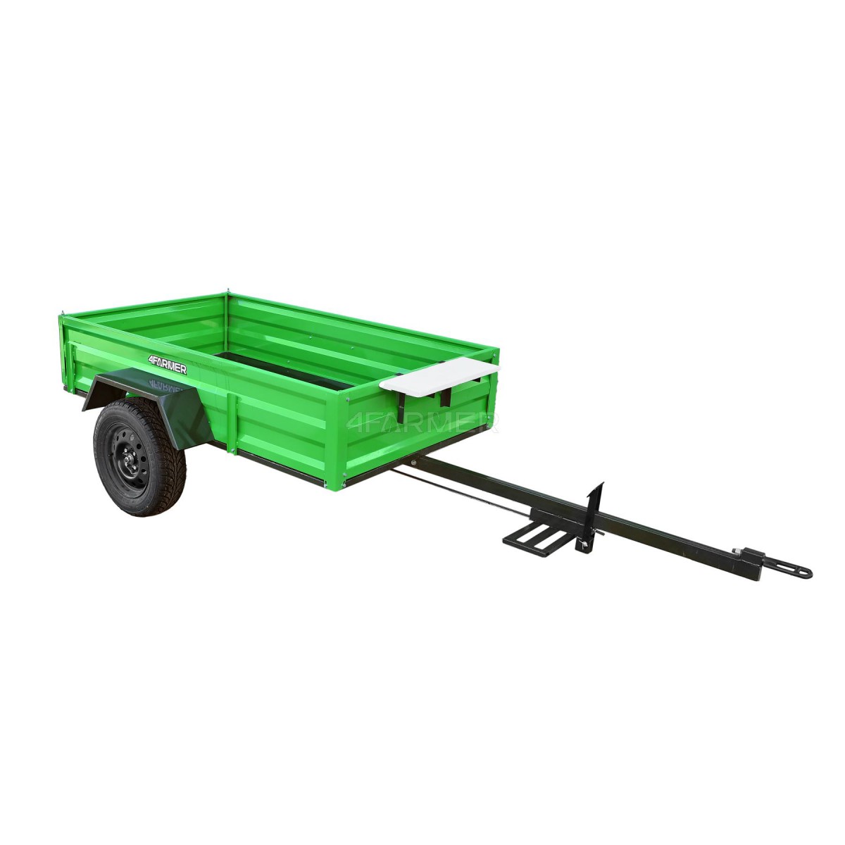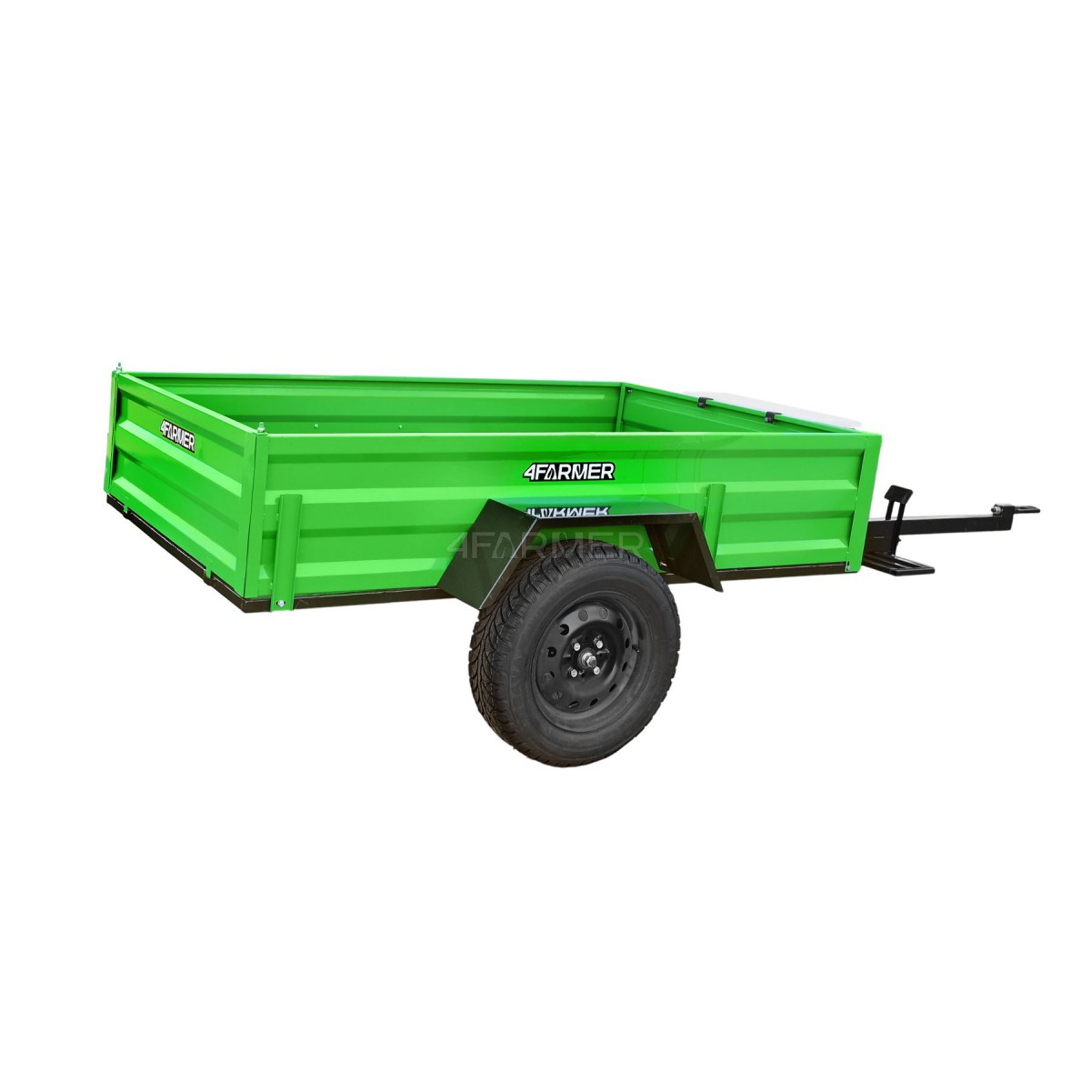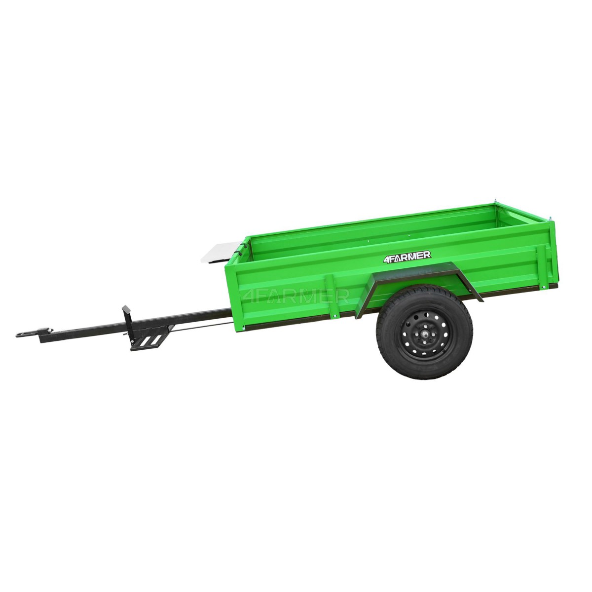 Oferowana przyczepka cenionej marki 4Farmer spełnia oczekiwania użytkowników, oferując bezproblemowe dostarczenie przewożonego materiału do celu. Jej ładowność wynosi 600 kg, natomiast długość całkowita wynosi 365 cm. Przyczepa jednoosiowa PT200 posiada przyjemny dla oka zielony kolor. Nie podlega ona rejestracji.