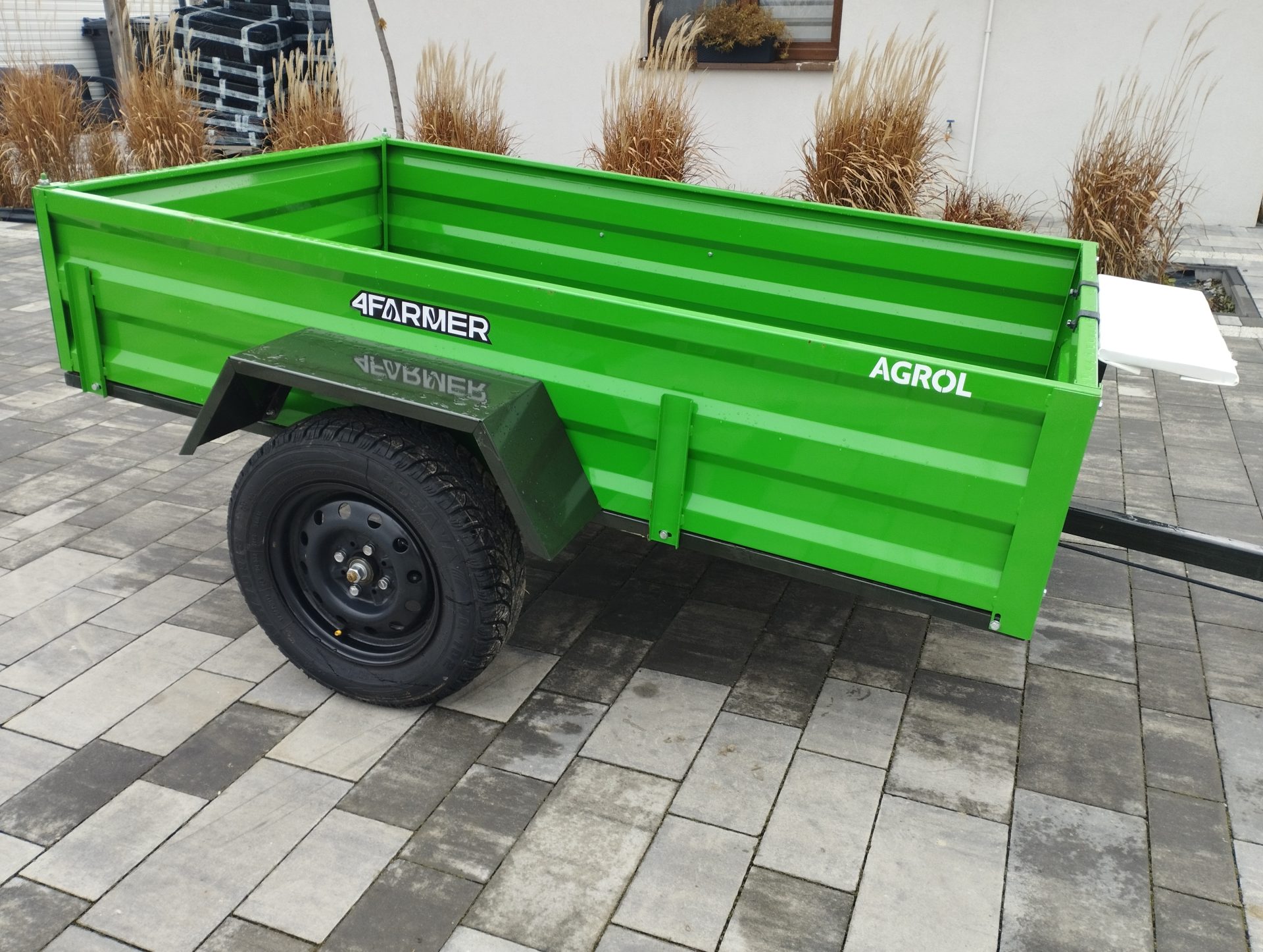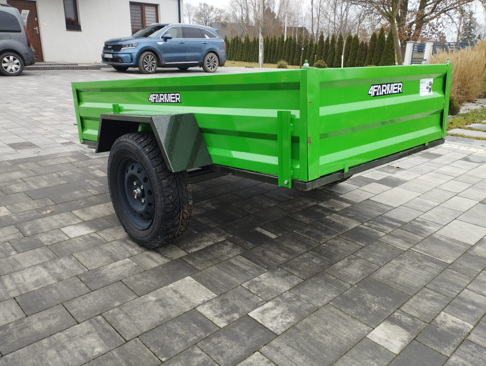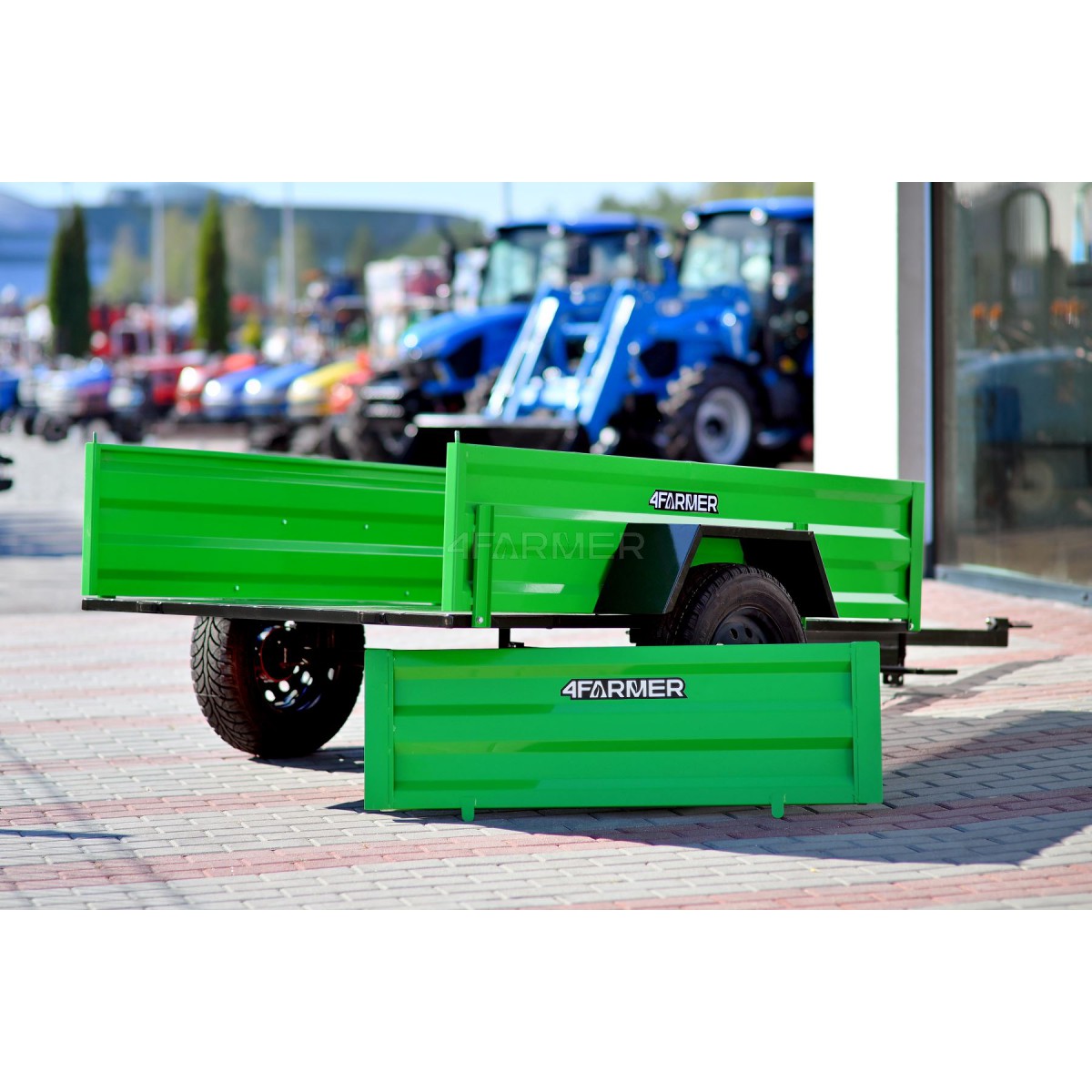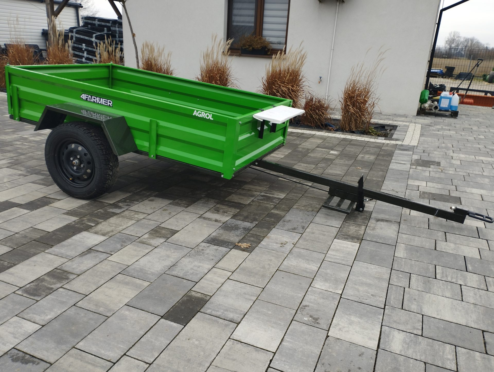 Oferowana przyczepka cenionej marki 4Farmer spełnia oczekiwania użytkowników, oferując bezproblemowe dostarczenie przewożonego materiału do celu. Jej ładowność wynosi 600 kg, natomiast długość całkowita wynosi 365 cm. Przyczepa jednoosiowa PT200 posiada przyjemny dla oka zielony kolor. Nie podlega ona rejestracji.