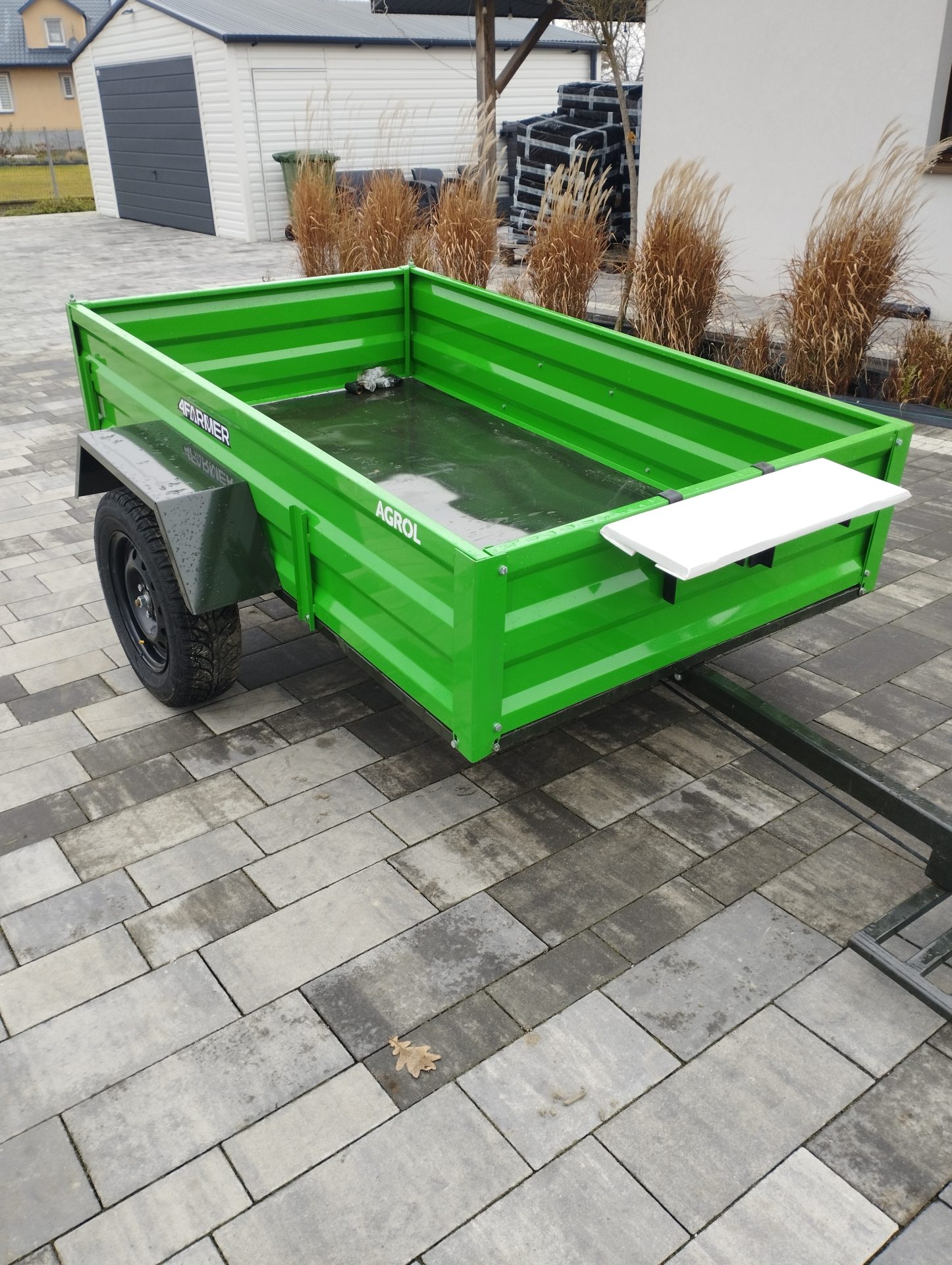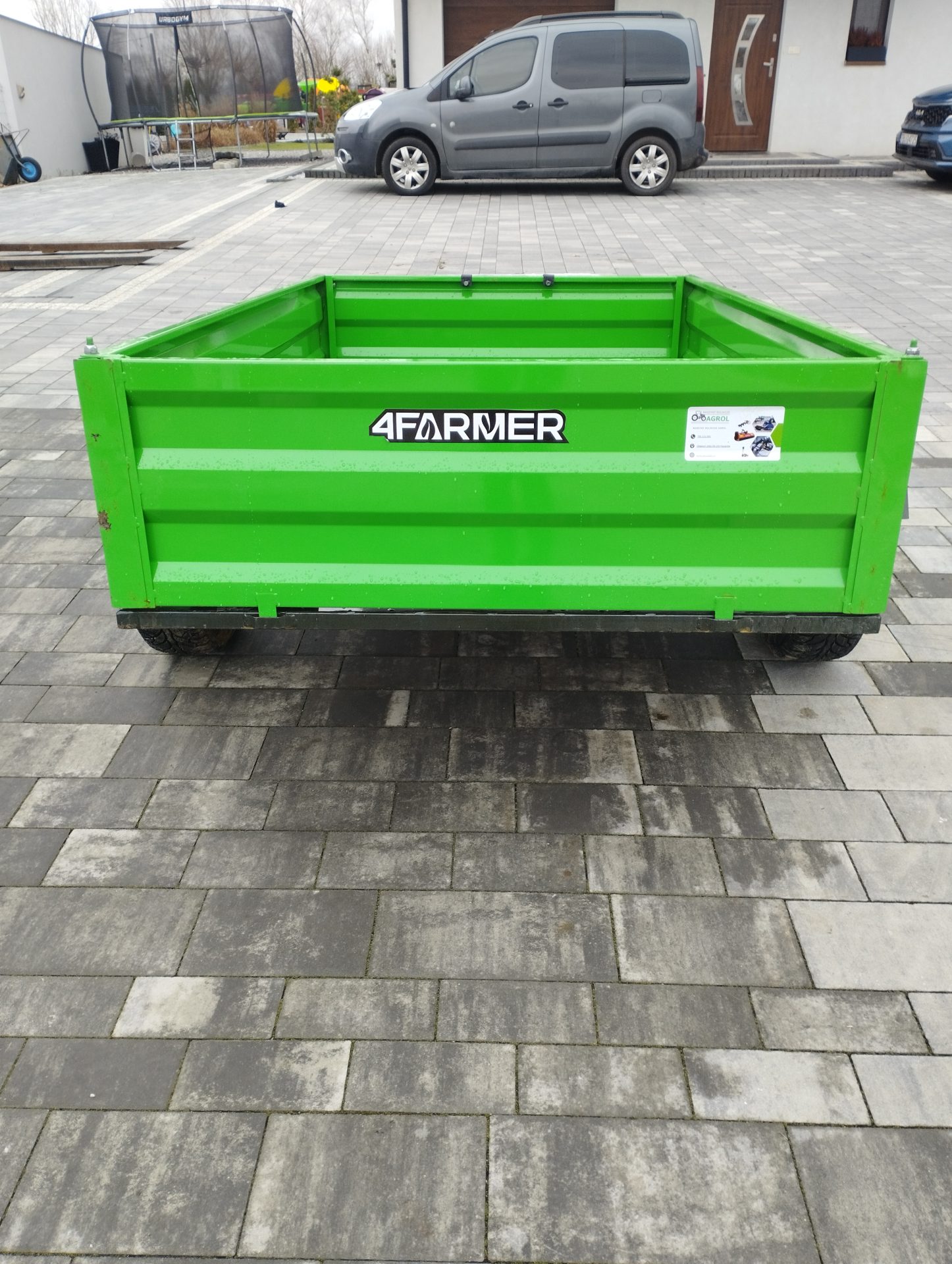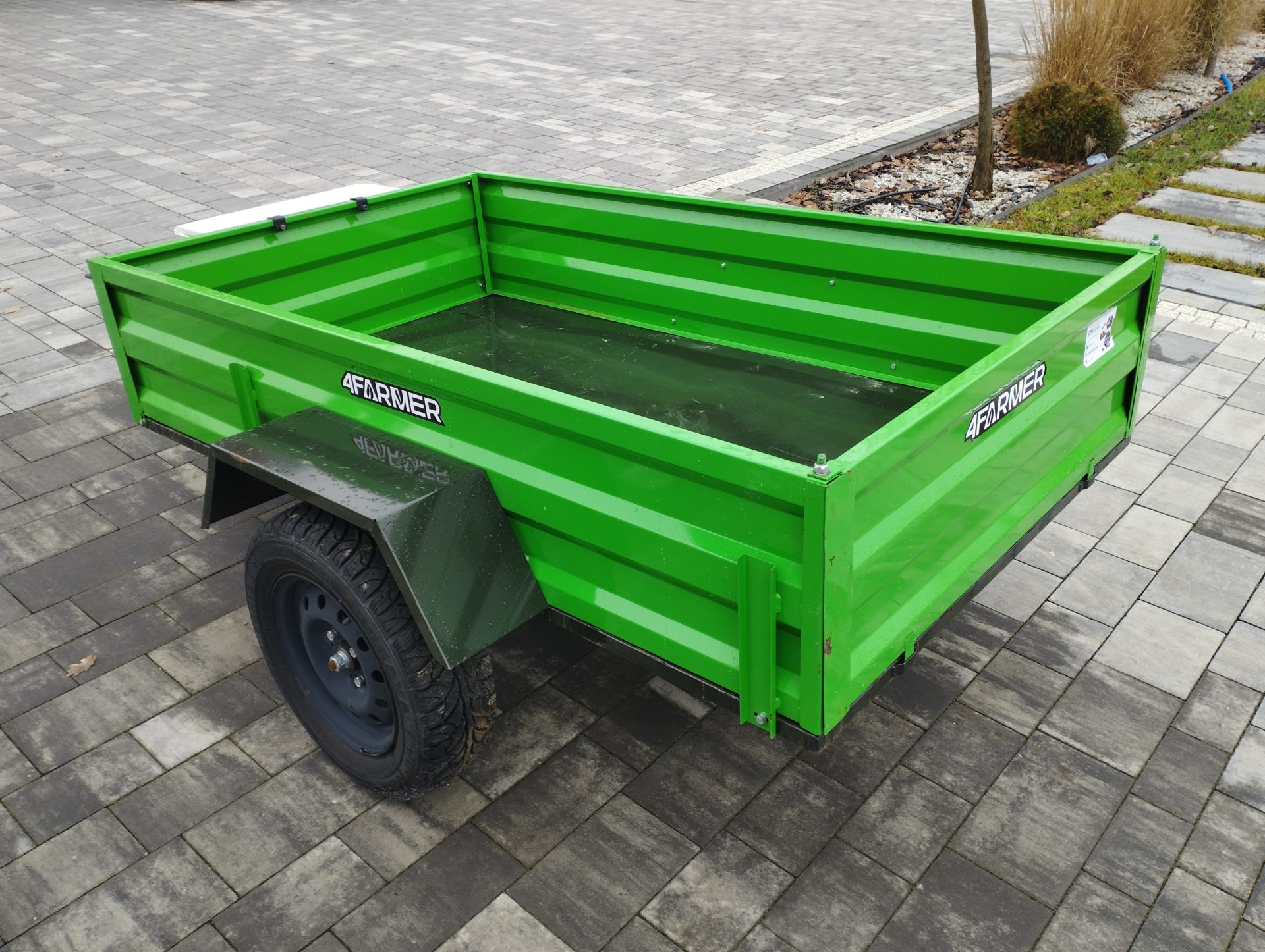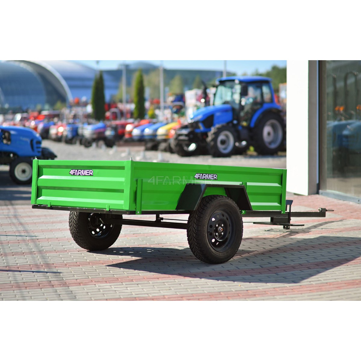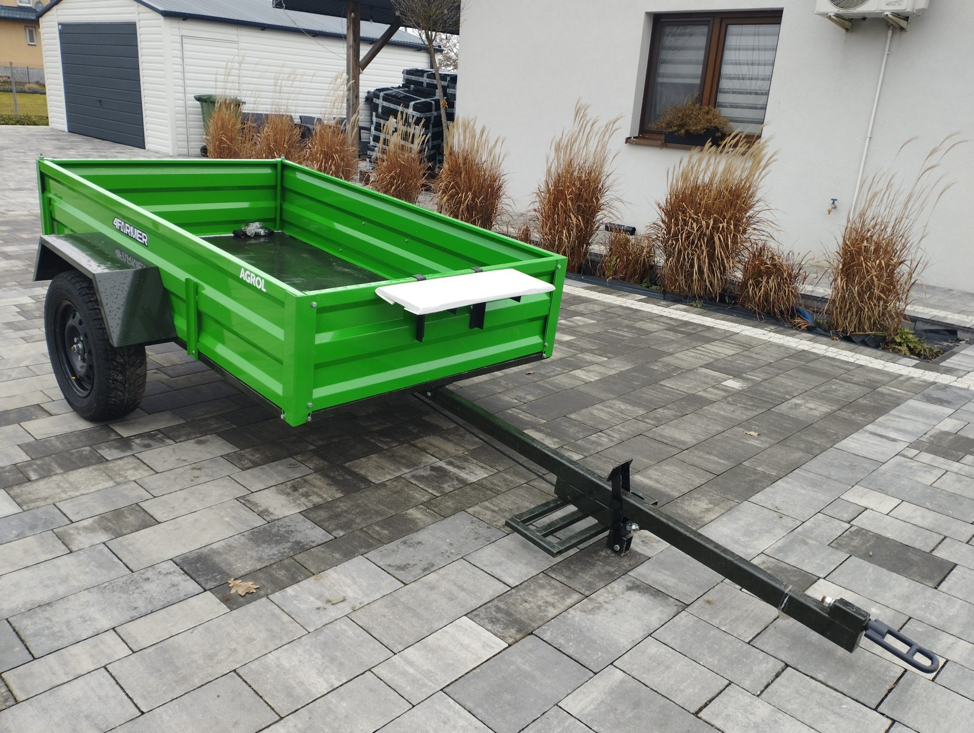 Oferowana przyczepka cenionej marki 4Farmer spełnia oczekiwania użytkowników, oferując bezproblemowe dostarczenie przewożonego materiału do celu. Jej ładowność wynosi 600 kg, natomiast długość całkowita wynosi 365 cm. Przyczepa jednoosiowa PT200 posiada przyjemny dla oka zielony kolor. Nie podlega ona rejestracji.