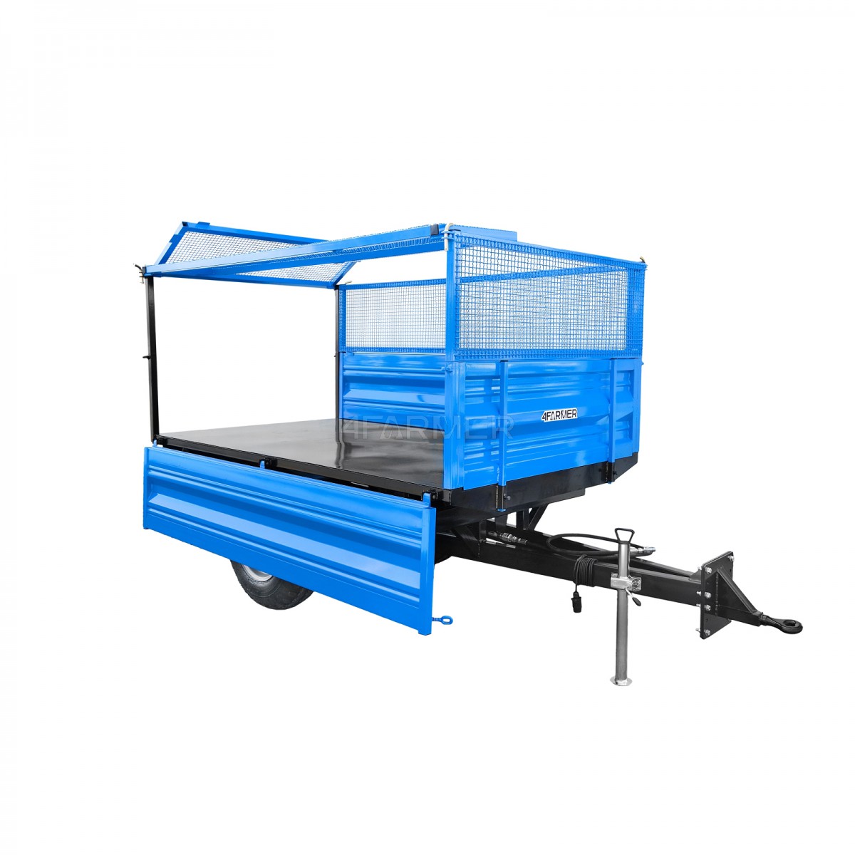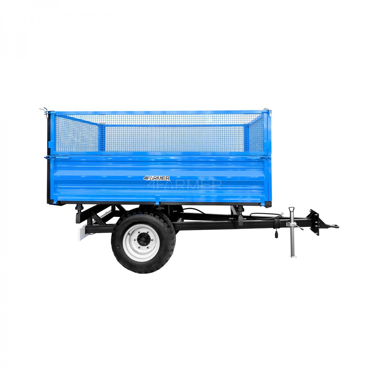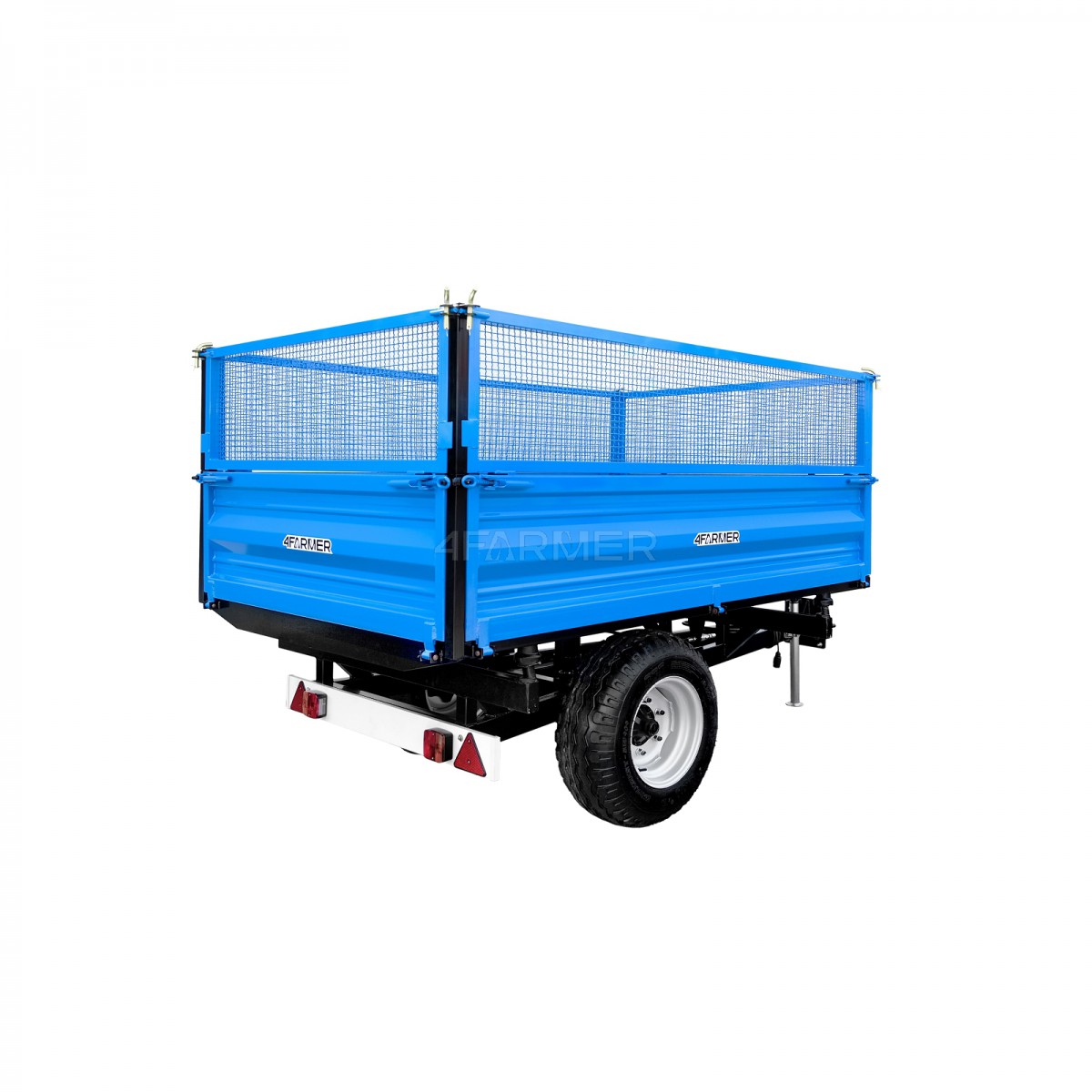 Jednoosiowa przyczepa rolnicza 2T wyposażona jest w nadstawki z siatki, dzięki czemu staje się doskonałym wyborem dla rolników oraz hodowców. Wysoki udźwig do 2 ton umożliwia transport różnorodnych materiałów. Zapewnia to efektywność oraz stabilność w transporcie również przy większych ładunkach.