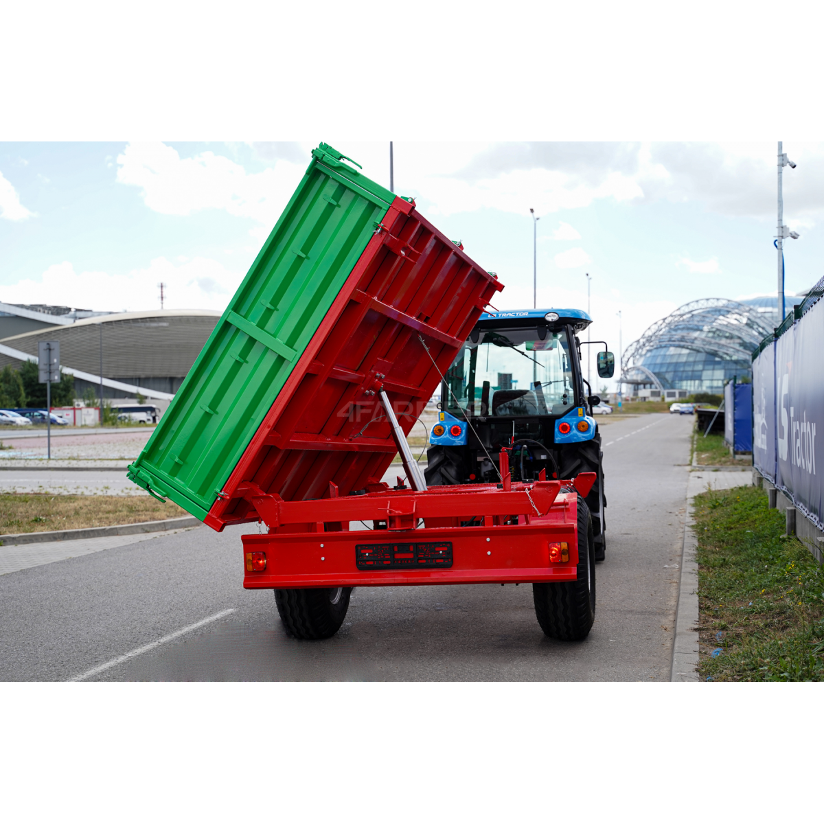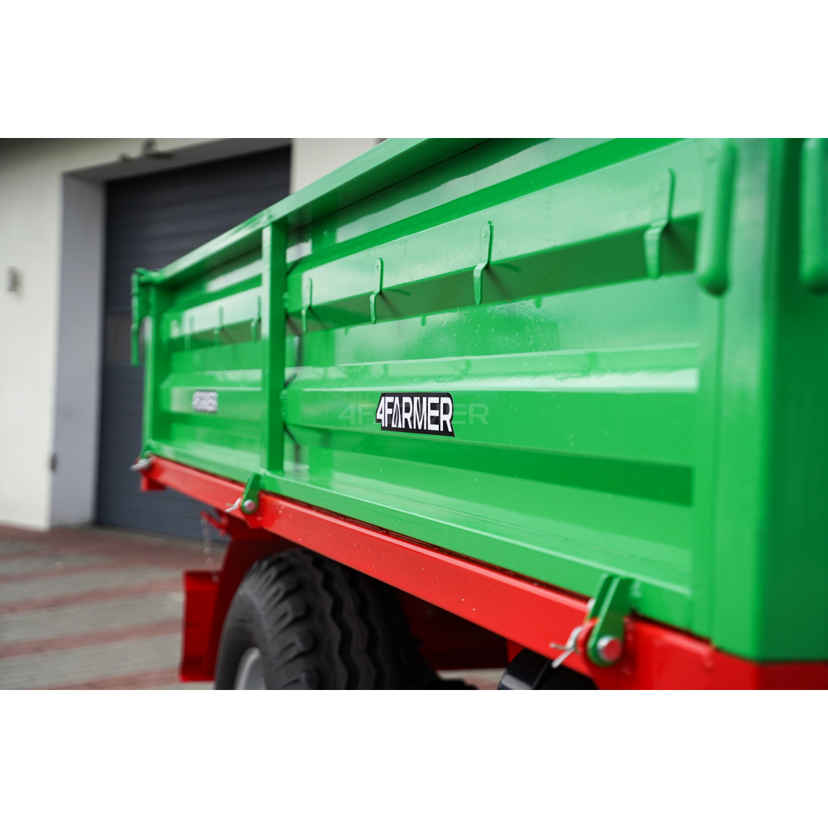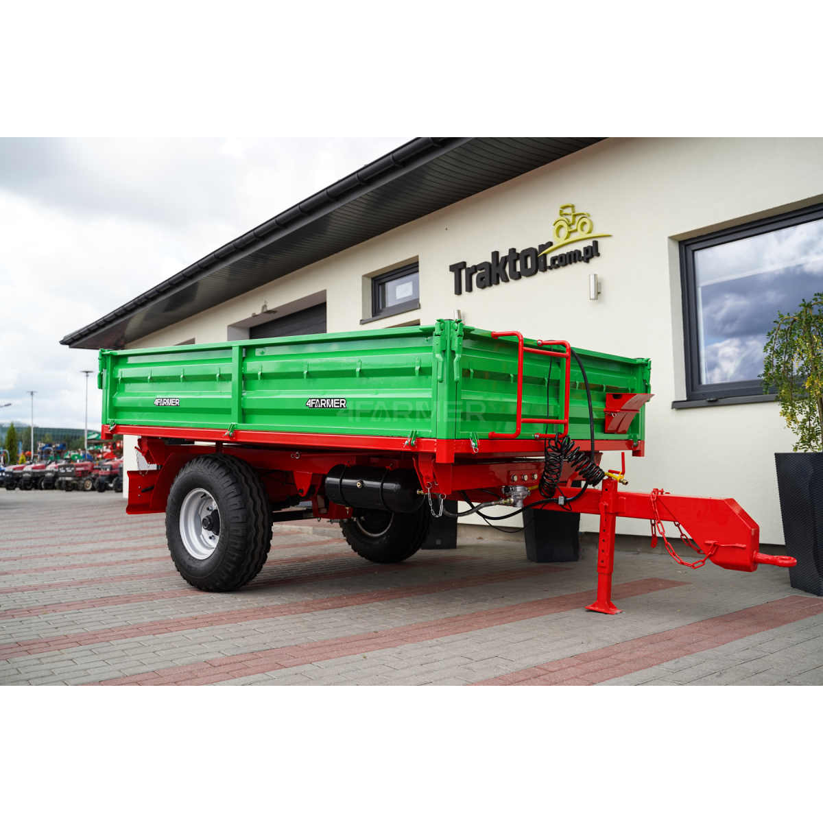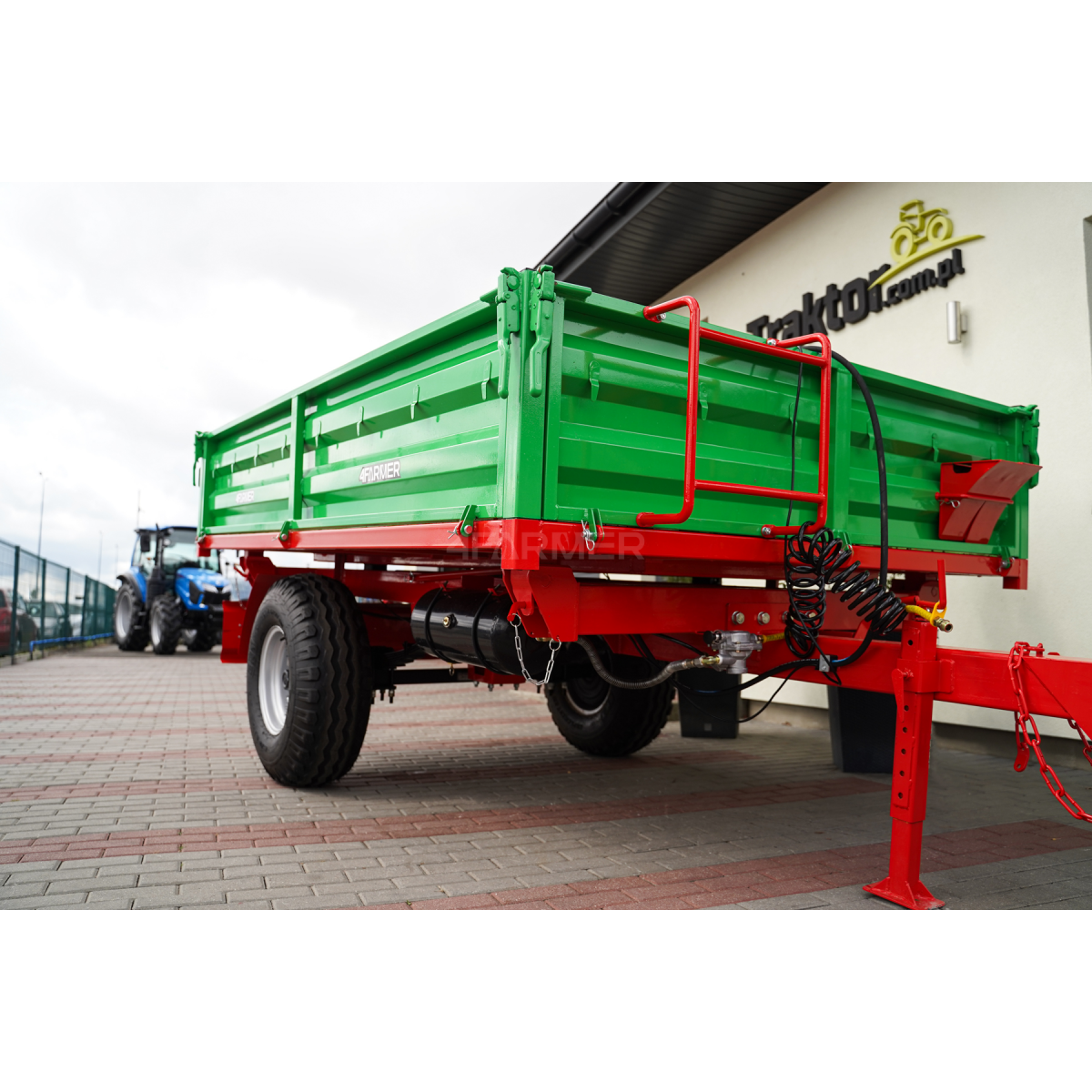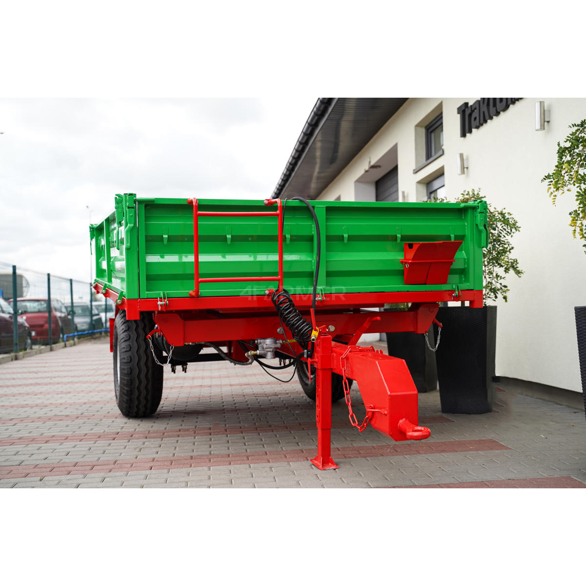 Uniwersalna przyczepa rolnicza P-3530 marki 4Farmer jest niezastąpionym narzędziem w gospodarstwach rolnych. Jest to przyczepa jednoosiowa o ładowności 3,5 tony, dzięki czemu sprawdza się do transportu ciężkich oraz wielogabarytowych ładunków. Została stworzona z myślą o współpracy z ciągnikami. Zapewnia efektywną i bezpieczną pracę na polach uprawnych. Model ten oferuje wszechstronność dzięki kiprowaniu w trzech kierunkach.