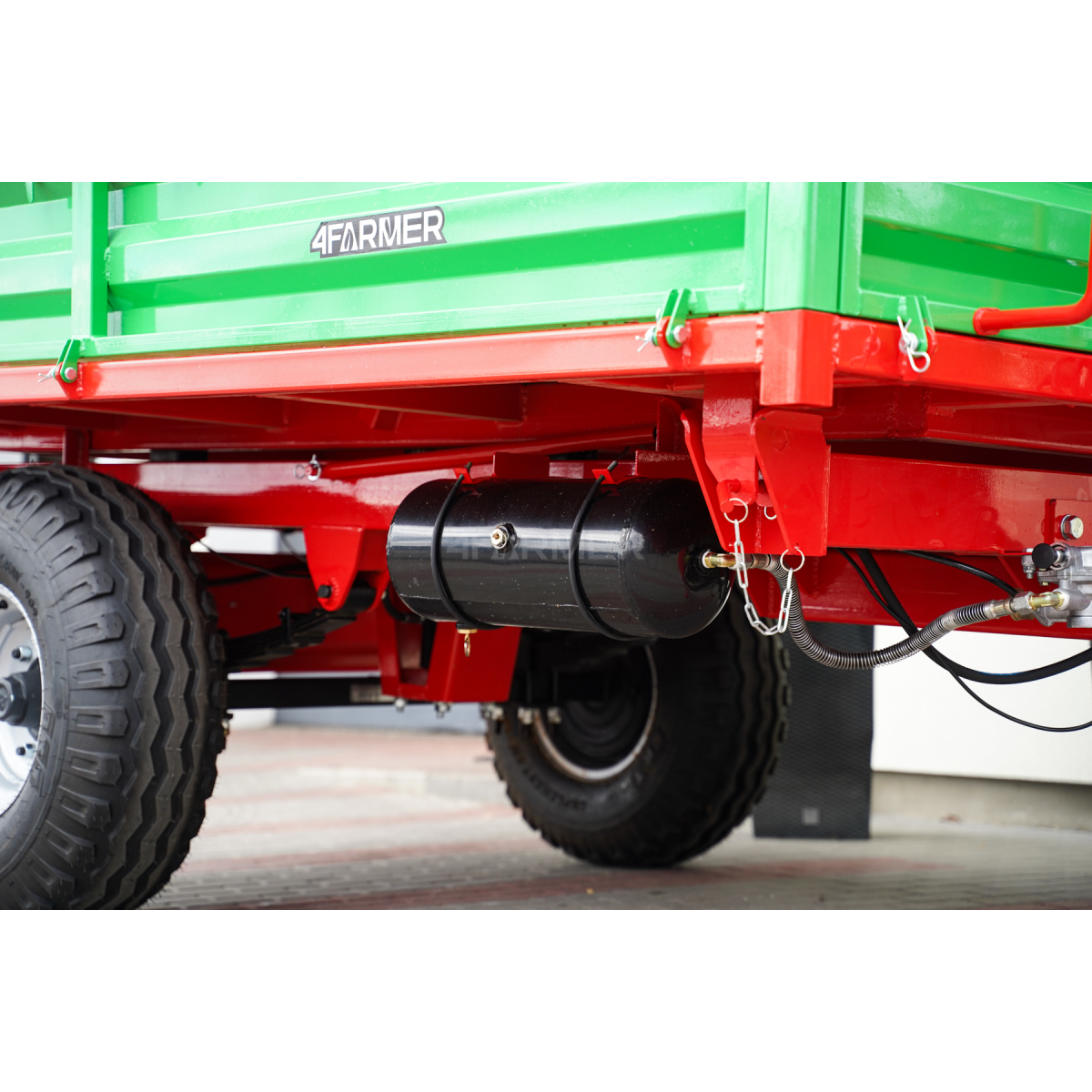 Model P-3530 wyposażono w liczne funkcje, które podnoszą komfort oraz bezpieczeństwo pracy. Jedną z takich rzeczy jest zastosowanie hydraulicznego systemu kiprowania i solidnych pneumatycznych hamulców. Pozwala to na łatwe i szybkie rozładowywanie materiałów, co znacząco przyspiesza procesy transportowe w gospodarstwie. Niezależnie od warunków pracy, można rozładować ładunek w dogodny sposób, bez konieczności dodatkowego manewrowania.