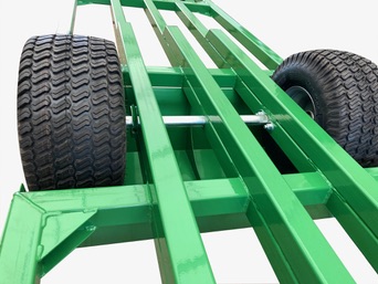 Kluczową rolę w wózku transportowym odgrywa solidna konstrukcja. Na dodatkową wytrzymałość wpływają wzmocnienia pod głównymi profilami. Koła sześciopłócienne, idealnie przystosowane do pracy w trudnym terenie, pozwalają na płynne przemieszczanie ładunków. Zastosowane koła umożliwiają przemieszczanie nawet na nierównych, błotnistych powierzchniach. To idealne rozwiązanie do sadów i terenów rolnych, gdzie warunki bywają wymagające.