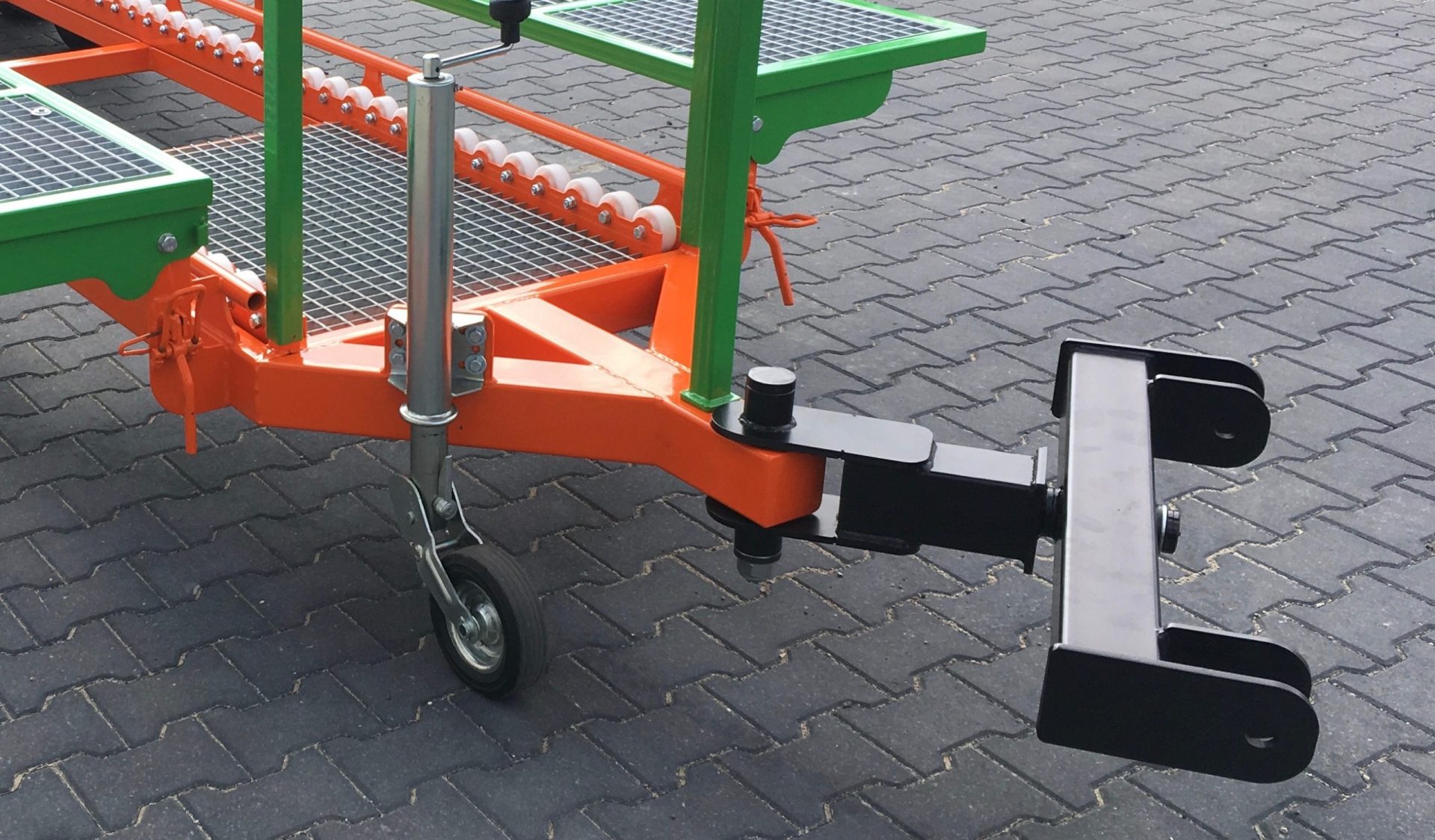 Zastosowanie wytrzymałych sześciopłóciennych kół zapewnia stabilność transportu. Wózek jest łatwy w manewrowaniu na różnych rodzajach podłoża, od twardych nawierzchni po nierówne tereny. Możliwość wyboru między zaczepem kulowym a przetyczką umożliwia dostosowanie wózka do różnych potrzeb użytkowników.