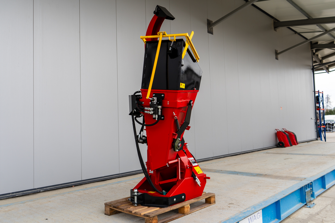 Komin wylotowy jest obrotowy. Można nim obracać o 360˚, dostosowując kąt wylotu rozdrobnionego drewna do indywidualnych potrzeb. Operator rębaka ma, więc pełną kontrolę nad kierunkiem i miejscem wyrzutu materiału.
