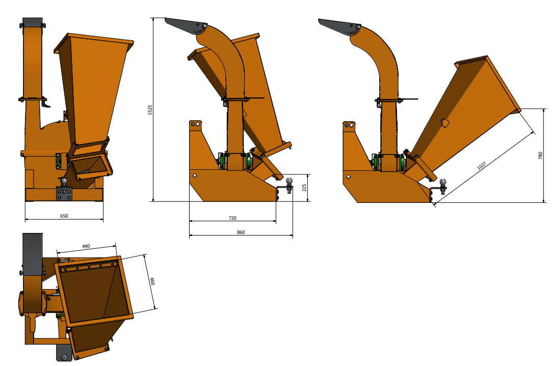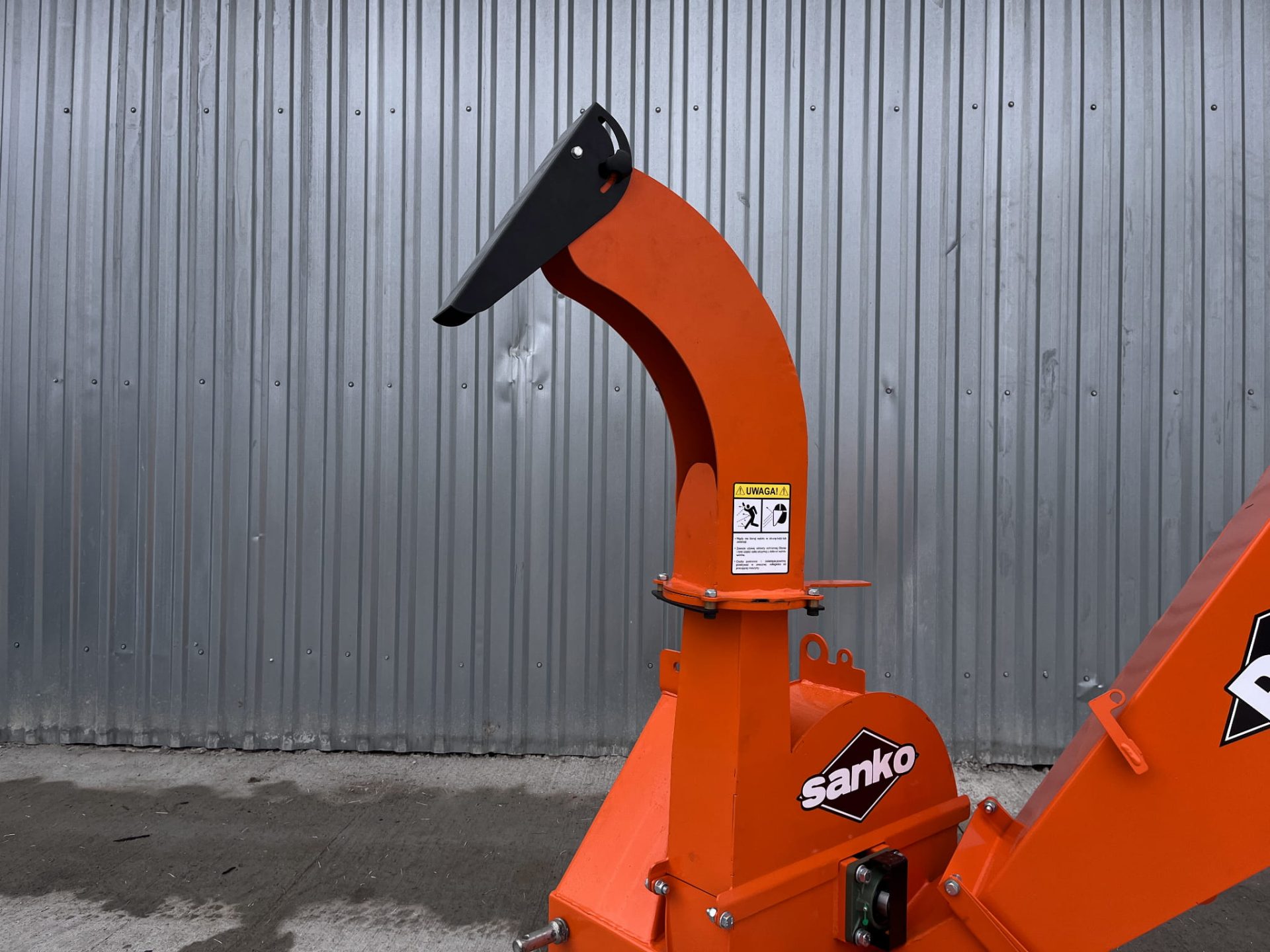 Rębak napędzany jest za pomocą wału odbioru mocy WOM ciągnika, co gwarantuje dużą moc i efektywność pracy. Dodatkowo, konstrukcja umożliwia obrót rury wylotowej o 360 stopni, co znacząco ułatwia obsługę sprzętu w trudniejszych warunkach. Zamontowany zaczep pod przyczepkę zapewnia komfortowy transport gałęzi, umożliwiając pracę w dowolnym miejscu.