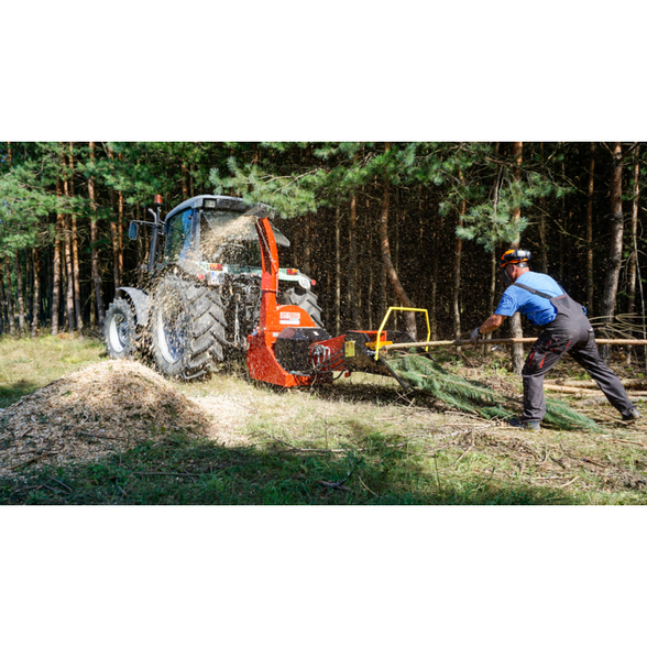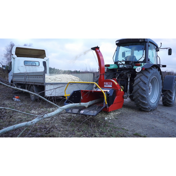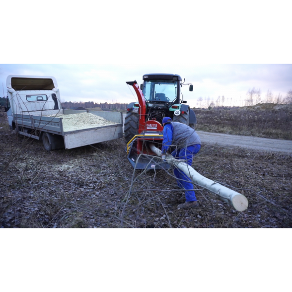 Kolejną cechą rębaka tarczowego RT-720R są hydrauliczne rolki wciągające. Dzięki nim podawanie gałęzi oraz pni drzew jest płynne. Napęd hydrauliczny zasilany jest przez wał WOM. Urządzenie pracuje z dużą wydajnością. Maksymalna średnica gałęzi oraz pni drzew, które mogą być podawane do urządzenia wynosi 17 cm.