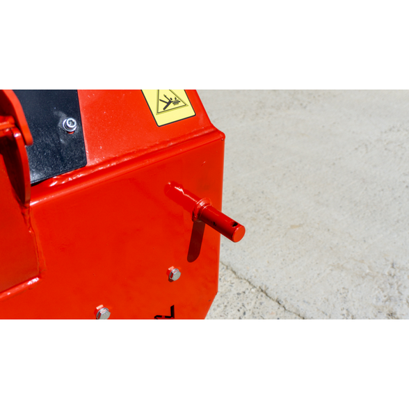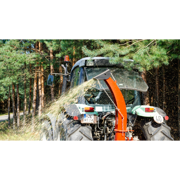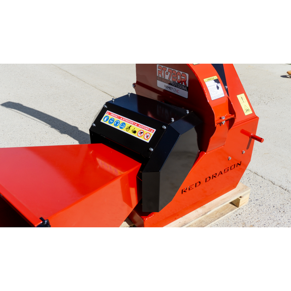 Rębak tarczowy RT-720R wyposażono ponadto w wyłącznik bezpieczeństwa, a także osłony chroniące użytkownika tego urządzenia. Kąt obrotu rury wyrzutowej 360˚ umożliwia precyzyjne kierowanie zrębków. Natomiast system wycofania materiału z leja podawczego zapewnia wygodę użytkowania. Ostatnim elementem o jakim warto wspomnieć jest możliwość regulacji grubości zrębki, co pozwala na dostosowanie pracy rębaka do indywidualnych potrzeb.