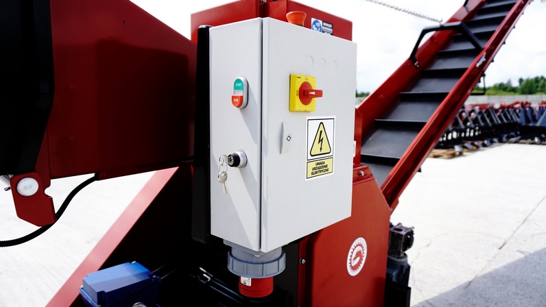 Kolejnymi ważnymi cechami rębaka walcowego RPE-200 są: automatyczny przełącznik rozruchu oraz przenośnik taśmowy. Przełącznik rozruchu (gwiazda-trójkąt) pozwala na płynne oraz bezpieczne uruchamianie rębaka. Zapobiega przeciążeniom sieci elektrycznej, a także zapewnia długotrwałą niezawodność urządzenia.