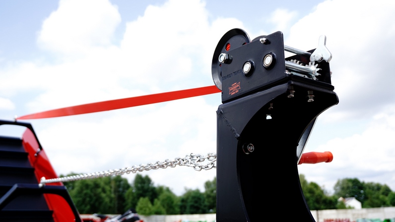 Przenośnik taśmowy o długości 3 metrów umożliwia płynne podawanie surowca oraz transport rozdrobnionego materiału. Z pewnością zwiększa ro efektywność procesu przetwarzania drewna, w tym gałęzi miękkich oraz twardszych.