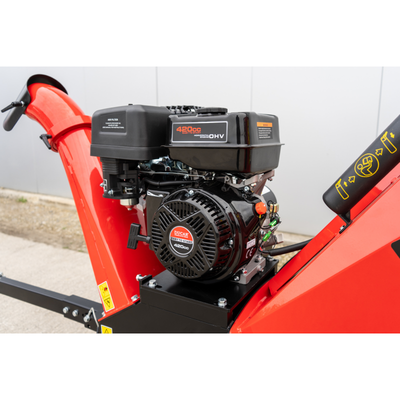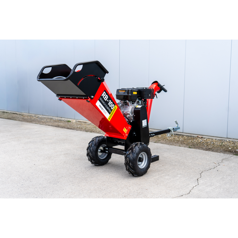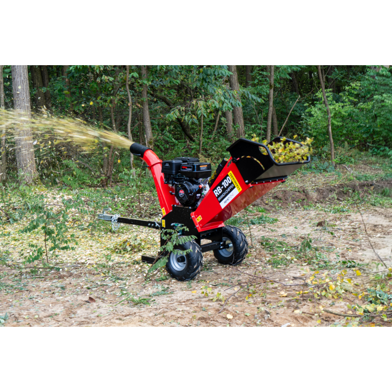 Oferowany model RB-100 NEW jest napędzany czterosuwowym silnikiem benzynowym o mocy 15 koni mechanicznych. Zapewnia on płynne oraz dynamiczne działanie. Urządzenie pozwala na cięcie gałęzi o średnicy do 12 cm. Może, więc być stosowane bez problemu przy pozostałościach po przycince krzewów i drzew oraz porządkowaniu terenów po pracach leśnych. Wysoka wydajność rębaka bębnowego RB-100 na poziomie 4-6 m³/h przekłada się na szybkie oraz sprawne przetwarzanie dużych ilości materiałów.
