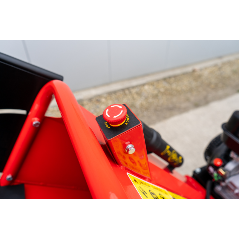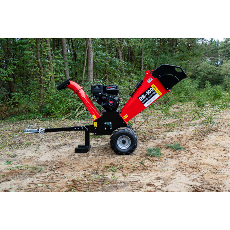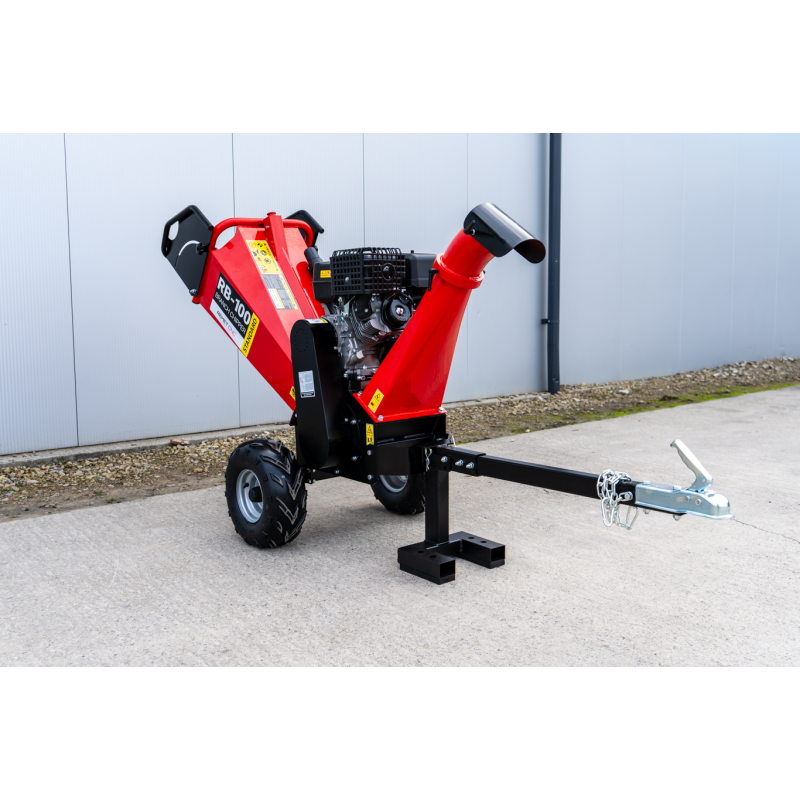 Z myślą o bezpieczeństwie użytkownika rębak bębnowy RB-100 posiada solidne osłony, wyłącznik bezpieczeństwa oraz sprzęgło odśrodkowe. Dzięki temu maszyna może zostać bezpiecznie uruchomiona oraz zatrzymana. Praca przebiega płynnie, bez ryzyka przeciążenia lub nagłego zablokowania bębna. Innym atutem tego modelu jest również jego mobilna konstrukcja. Rębak osadzony jest na wytrzymałym podwoziu terenowym z możliwością zaczepienia do haka. Ułatwia to transport po różnych nawierzchniach.