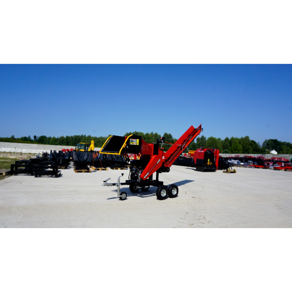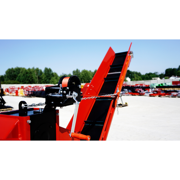 Transport przetworzonego drewna ułatwia taśmociąg o długości 2,30 metra. Taśmociąg z zabierakami umożliwia szybkie przemieszczanie rozdrobnionego surowca do miejsca składowania. Zaoszczędzi to czas operatora rębaka i sprawi, że cały proces przebiegnie w sposób niezwykle szybki i prosty.